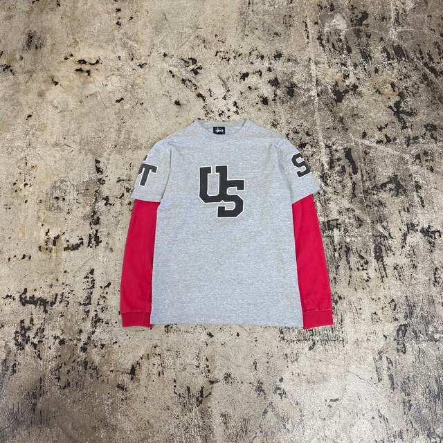 00s STUSSY CLASSIC LOGO LAYERED L/S COLOR : GREY / RED / BLACK / WHITE CONDITION : VINTAGE (*写真10) MATERIAL : COTTON100% MADE IN USA SIZE : S (着丈65cm,肩幅42cm,身幅45cm,袖丈59cm) (MODEL 170cm,54kg)