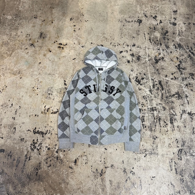 00s STUSSY LOGO CHECKER ZIP HOODIE COLOR : GREY / GREEN / BLACK CONDITION : NORMAL MATERIAL : COTTON 80% , POLYESTER 20% SIZE : M (着丈64cm,肩幅44cm,身幅53cm,袖丈67cm) (MODEL 170cm,54kg)