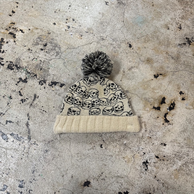 00s HYSTERIC GLAMOUR SKULL POM POM BEANIE COLOR : BEIGE / BLACK CONDITION : MATERIAL : - SIZE : ONE SIZE