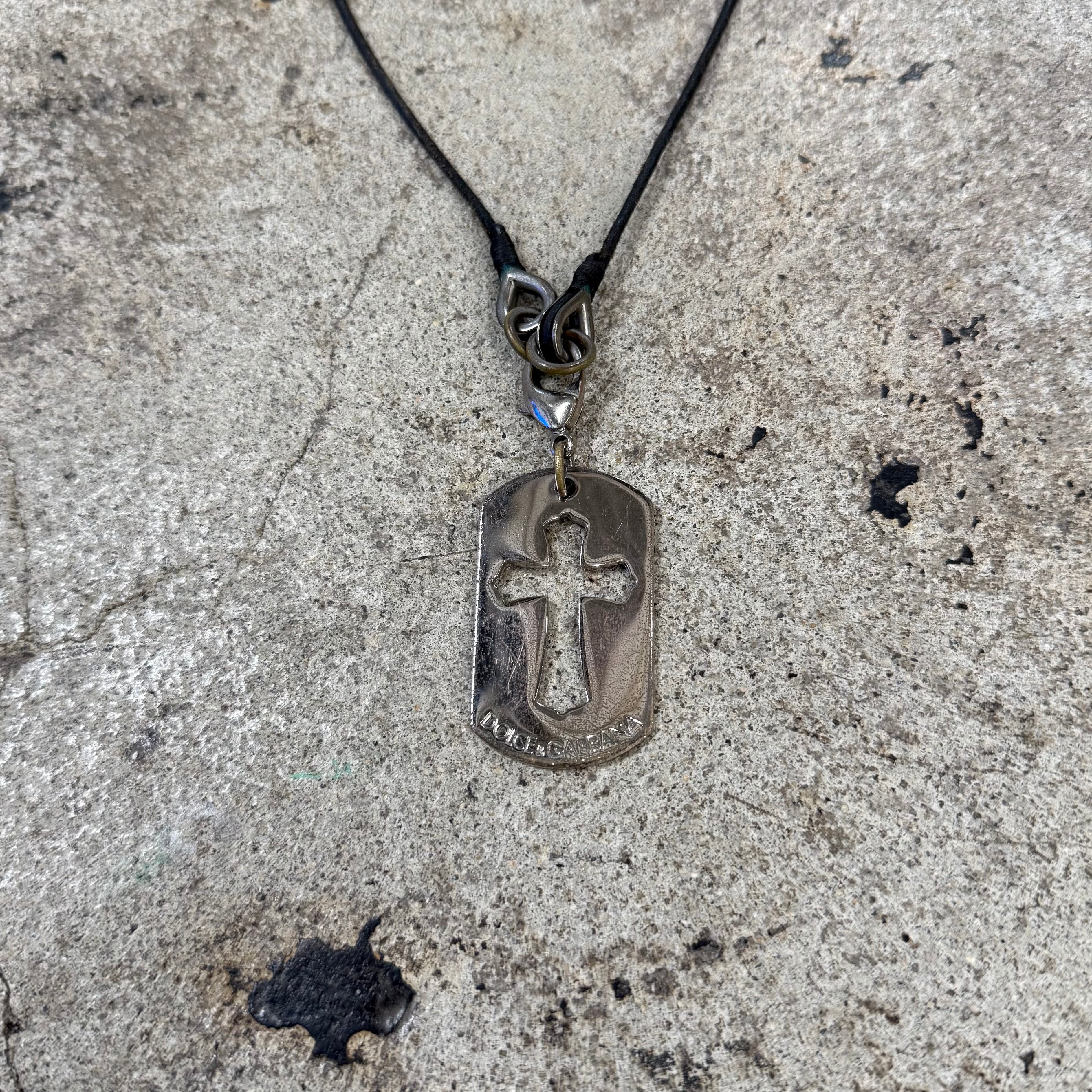 00s DOLCE&GABBANA CROSS PLATE DOG TAG NECKLACE