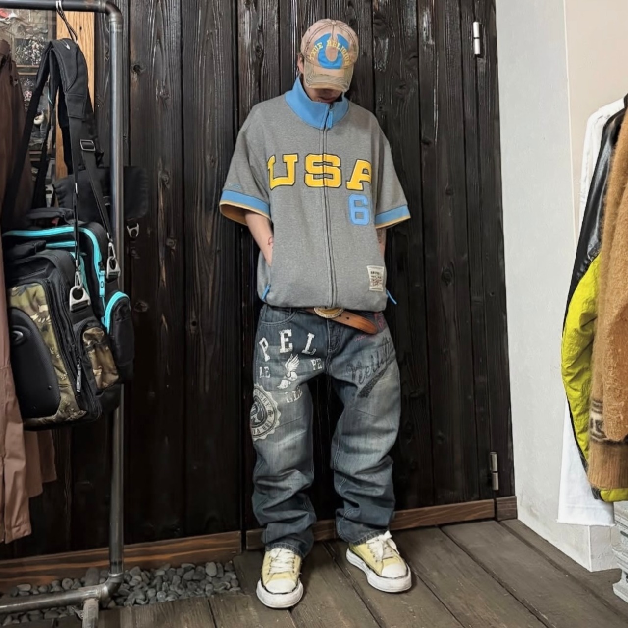 00s PELLEPELLE LOGO STITCH PAINT DENIM