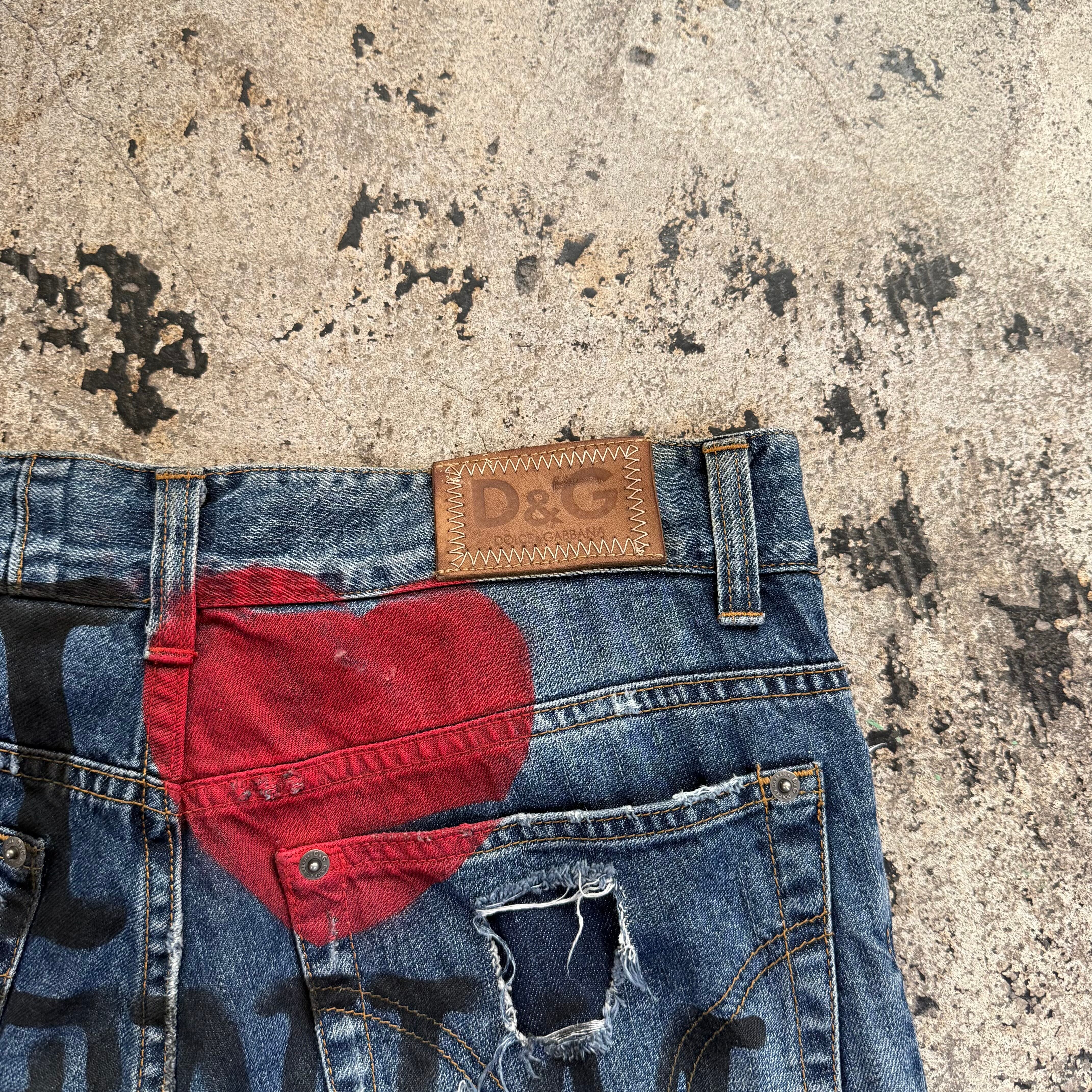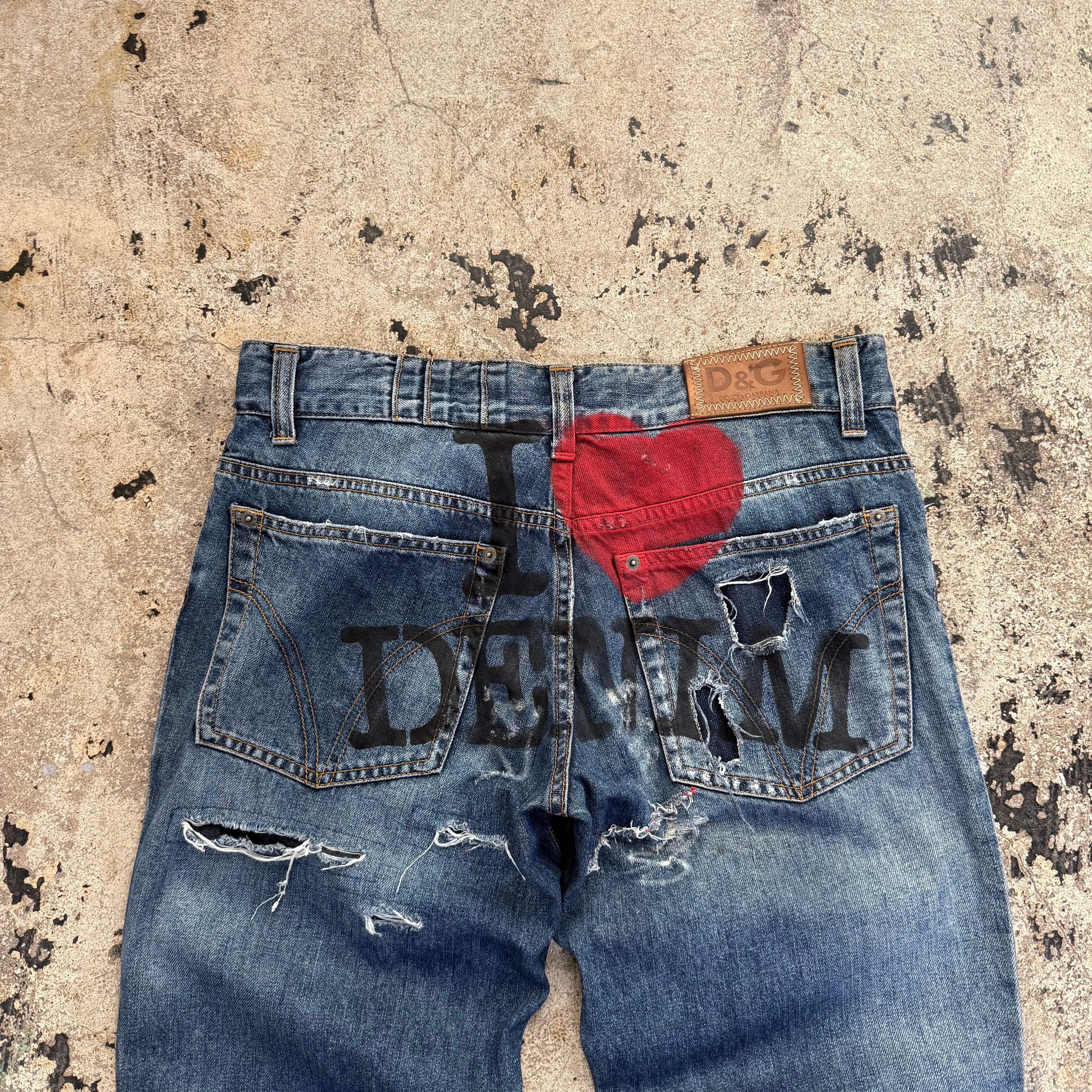00s DOLCE&GABBANA I ❤︎ DENIM PAINT DAMAGE DENIM