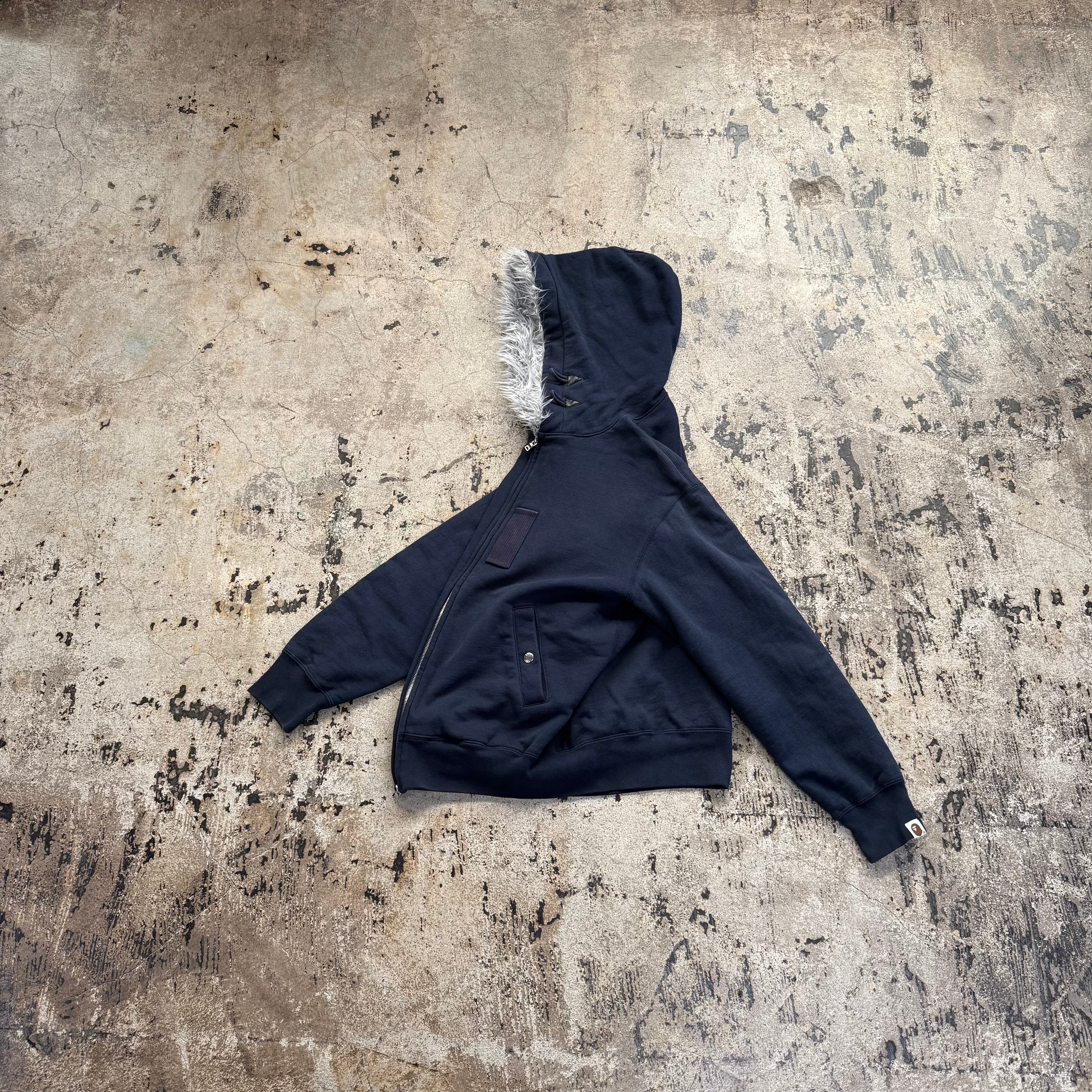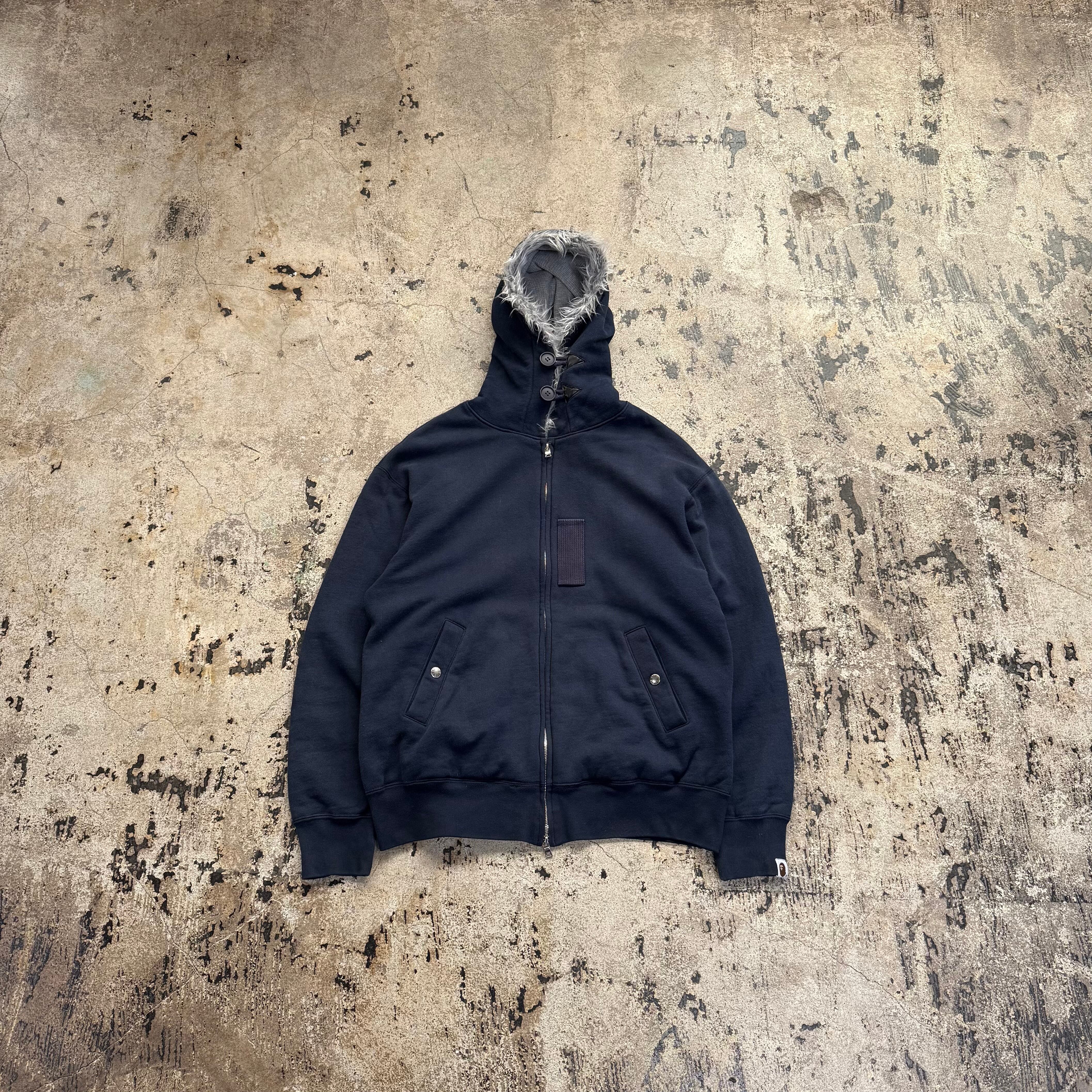 00s A BATHING APE FUR WAFFLE ZIP UP HOODIE