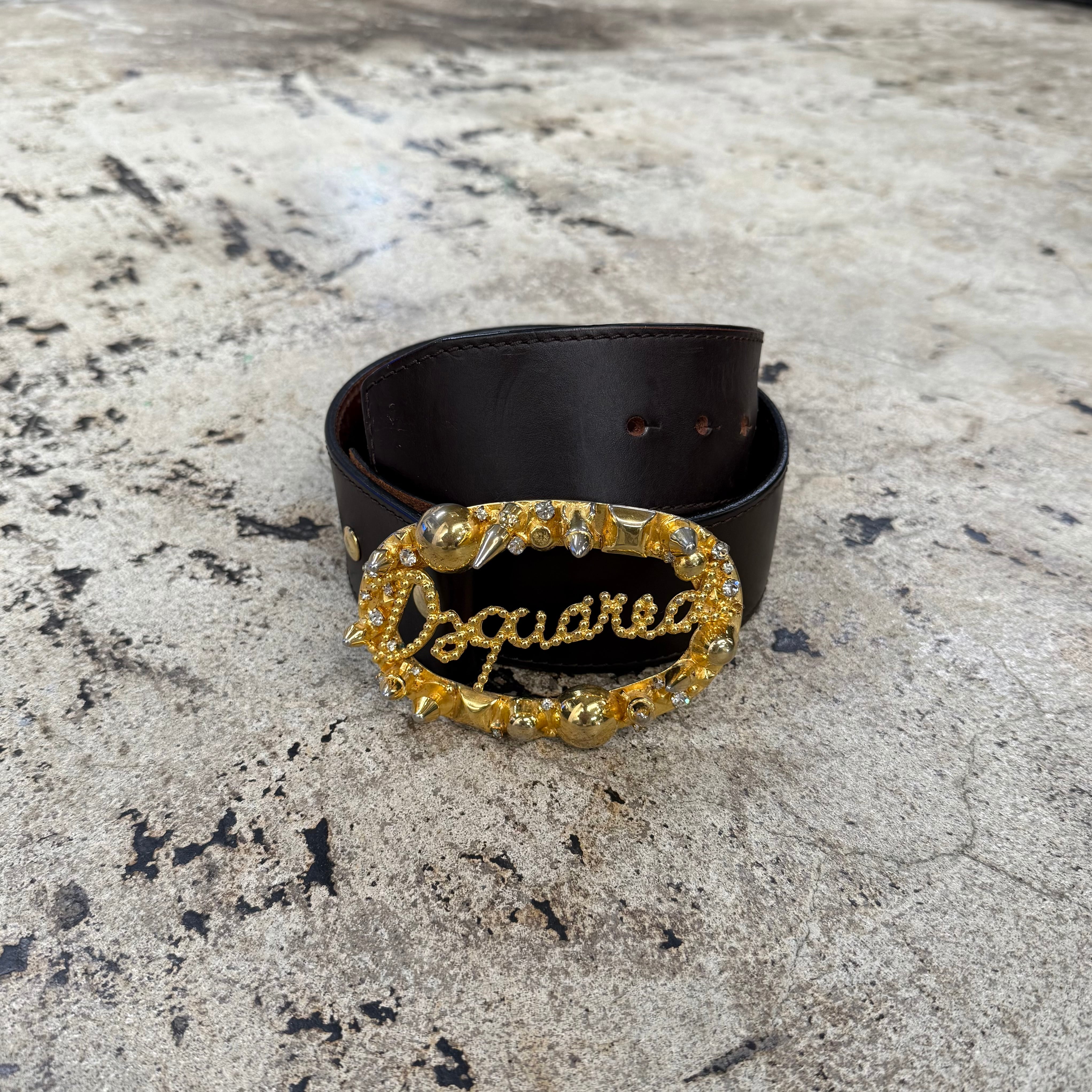 00s DSQUARED2 CRYSTAL STUDS LEATHER BELT