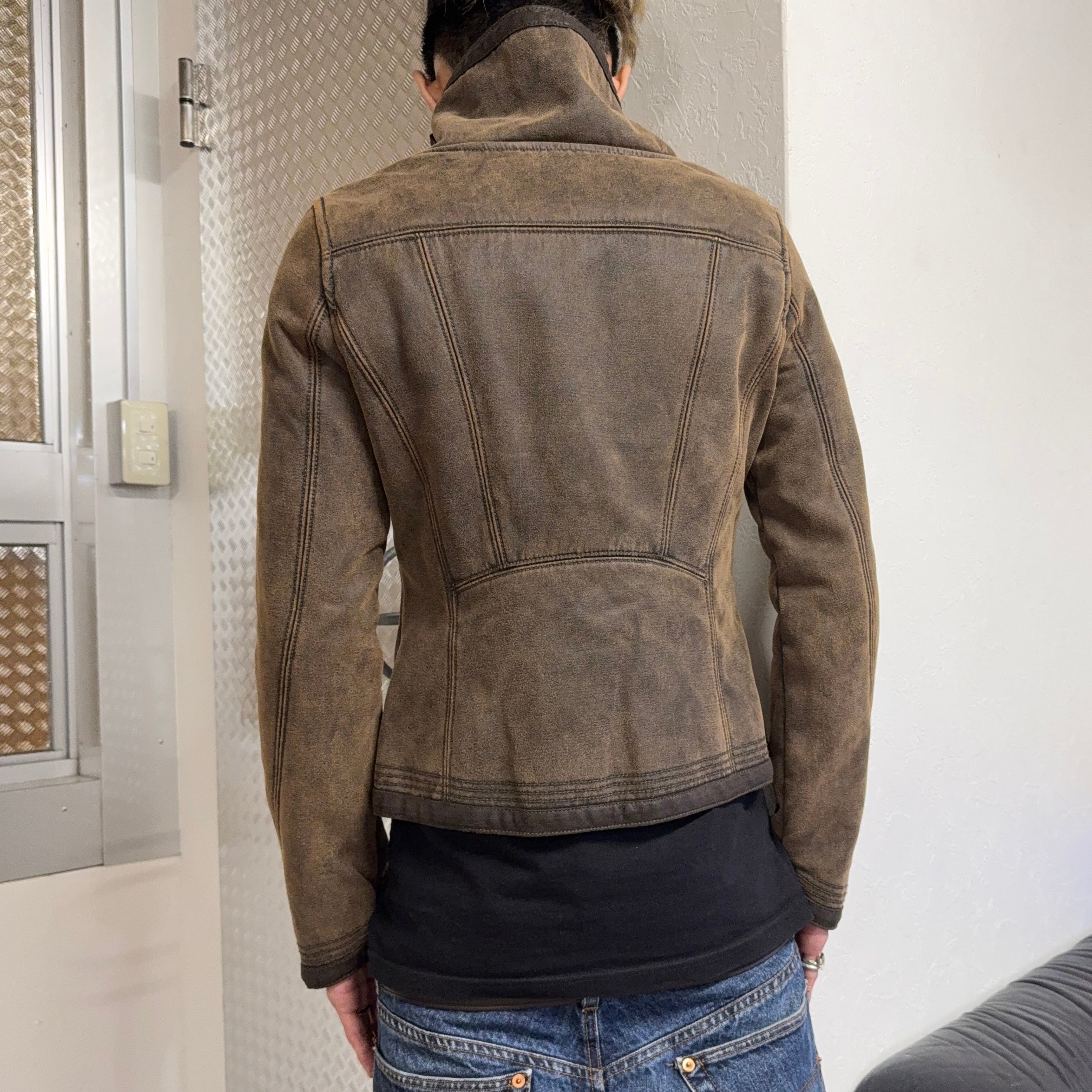 00s ARMANI JEANS FUR BIKER JACKET