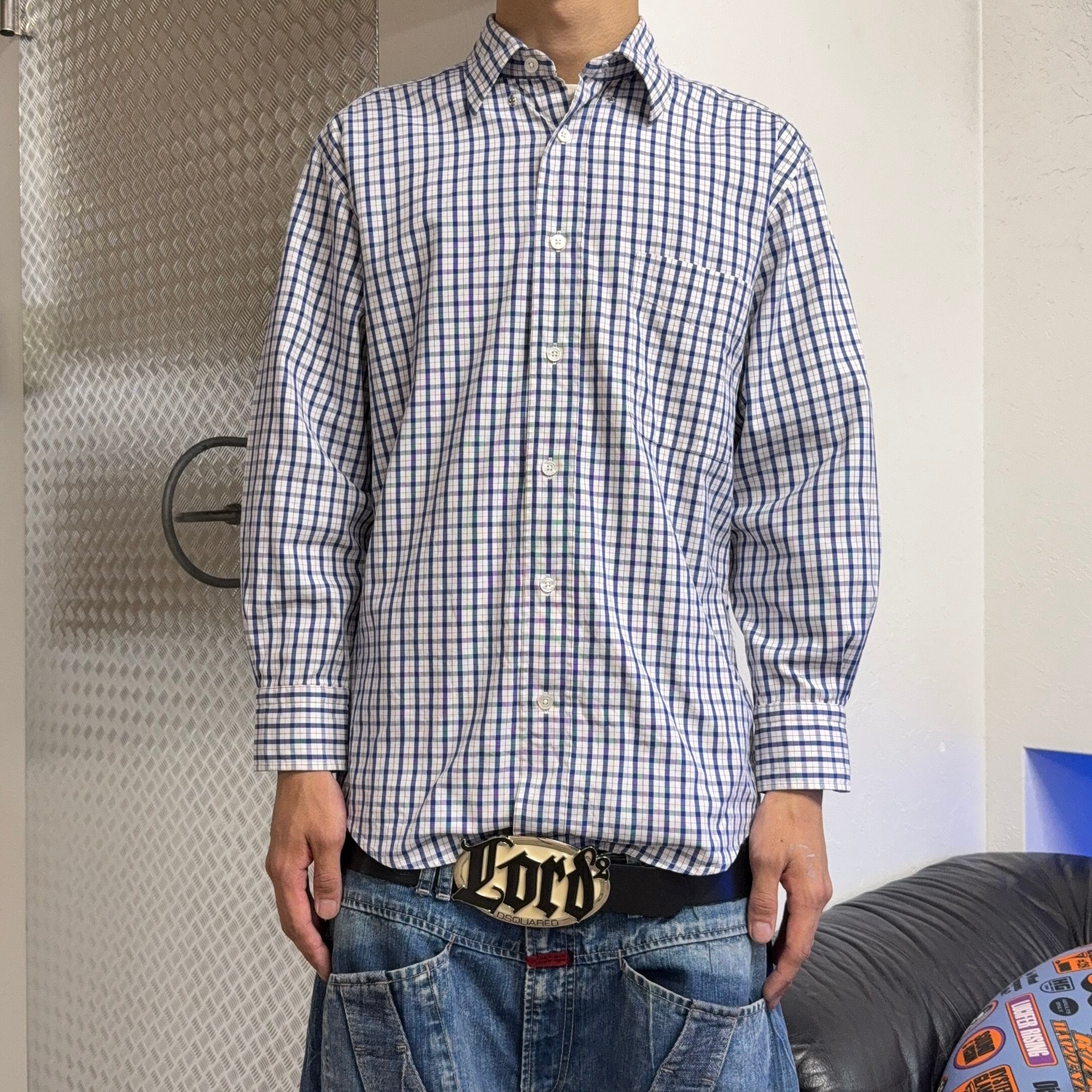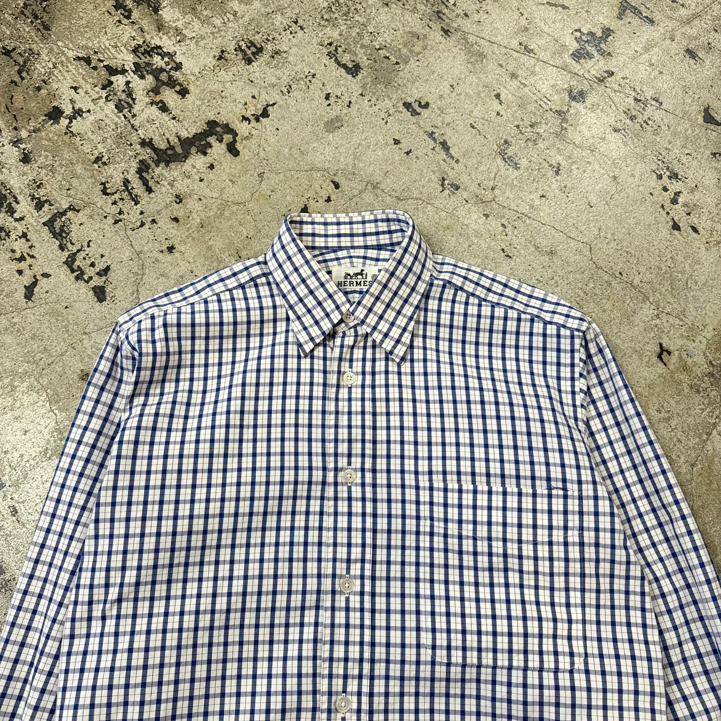 80s HERMES GINGHAM CHECK SHIRT