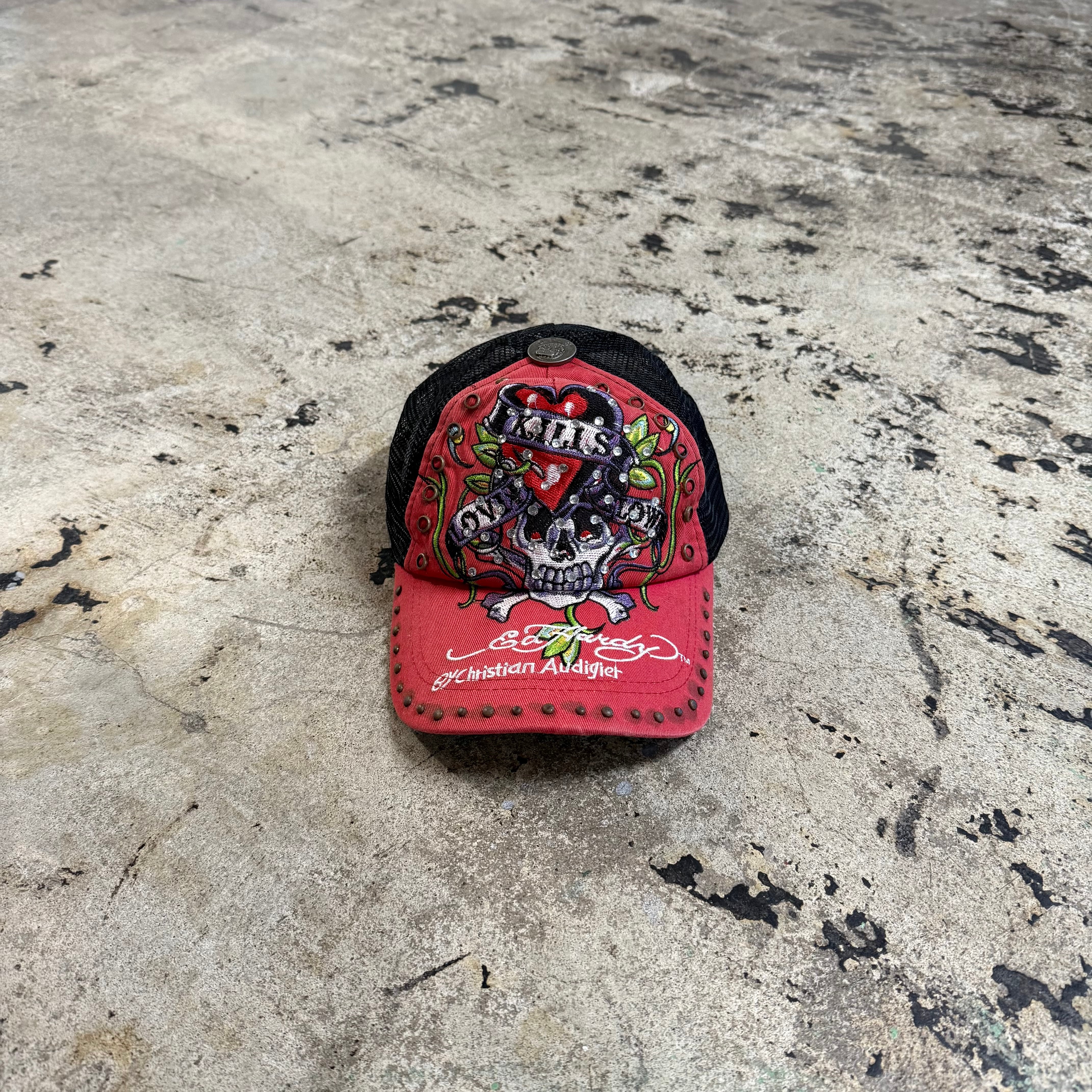 00s ED HARDY SKULL LOGO STUDS CAP