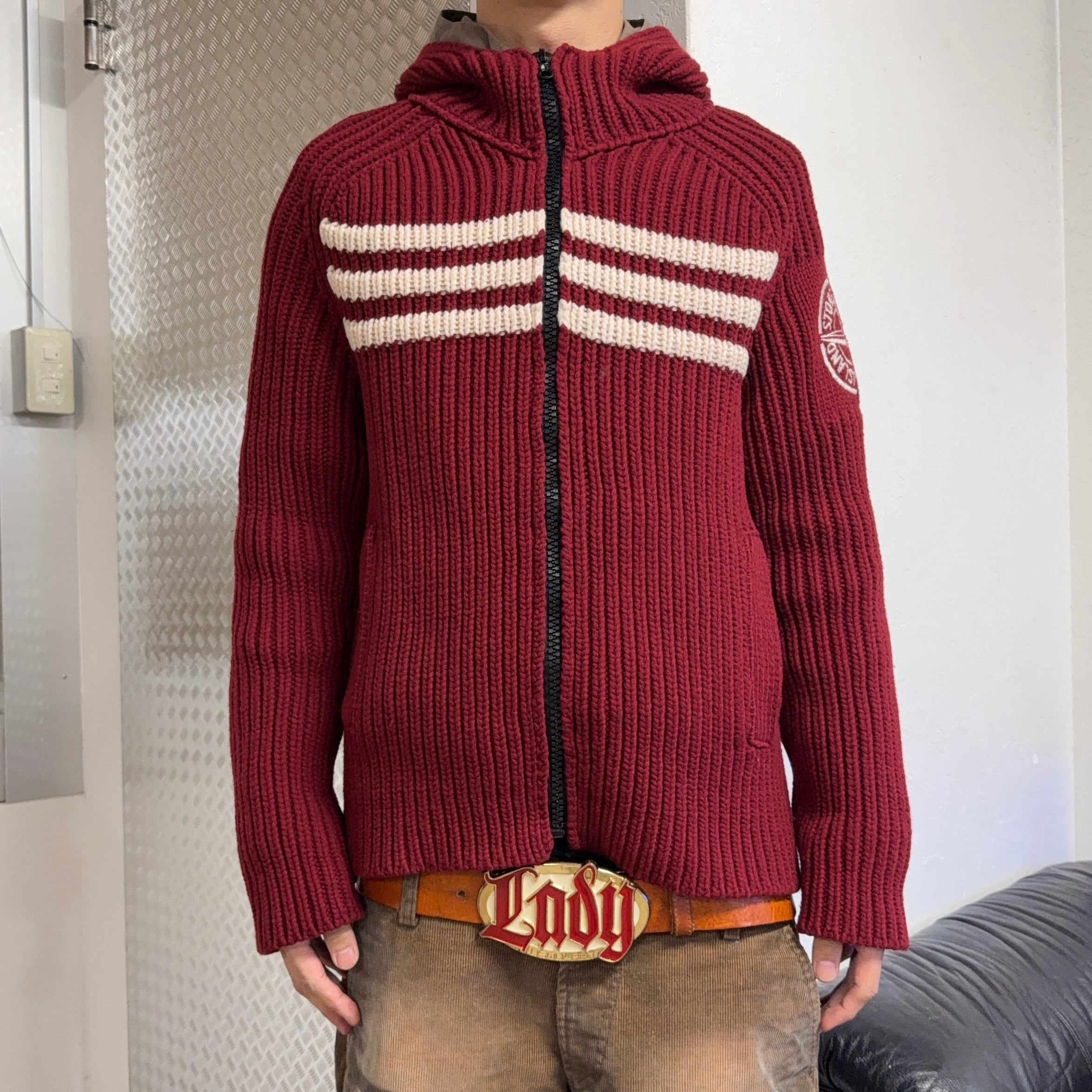 STONE ISLAND 2005AW 2-IN-1 DUTCH ROPE KNITTED ZIP UP JUMPER