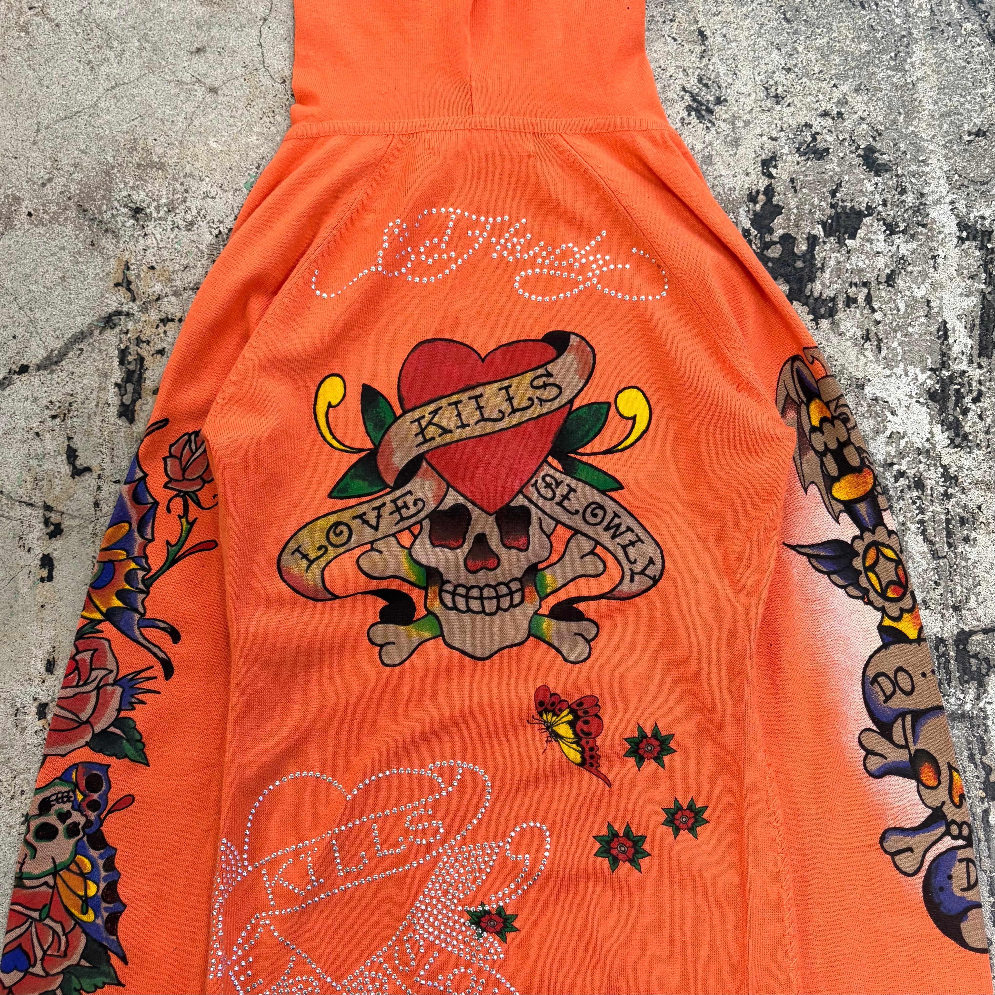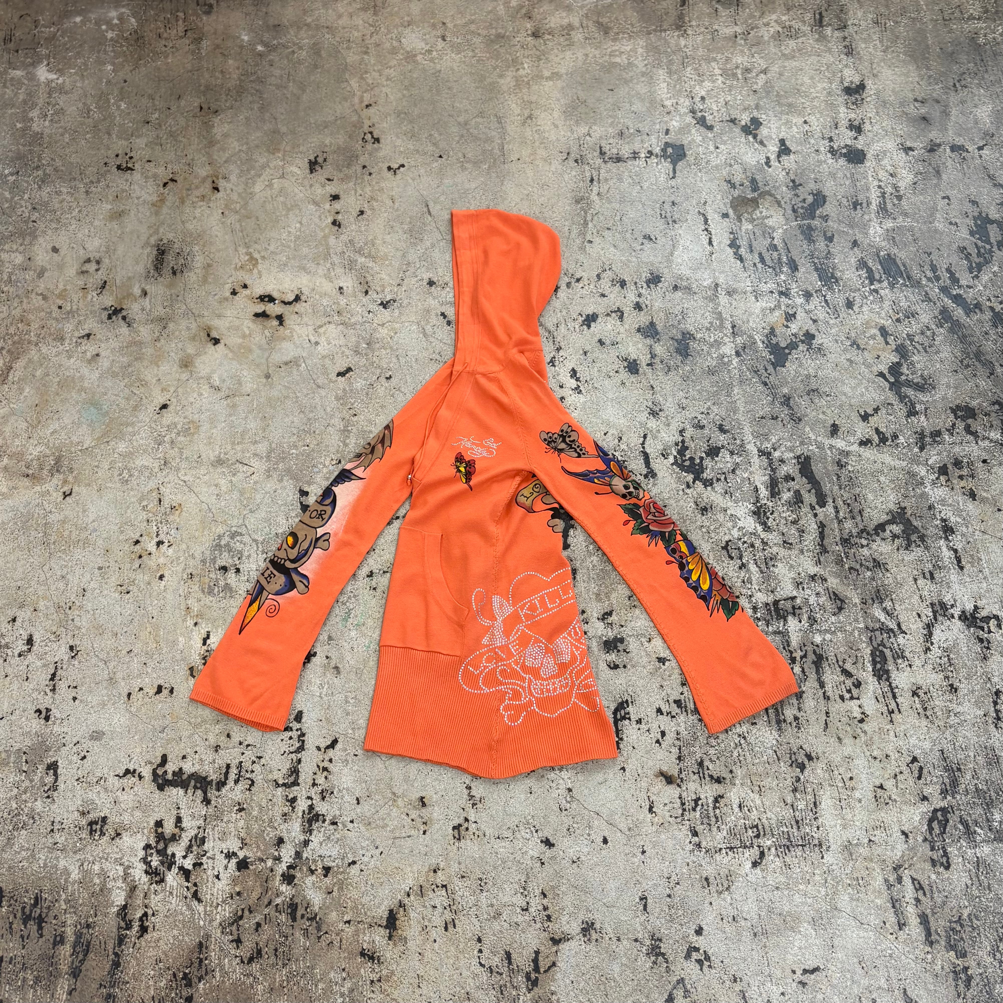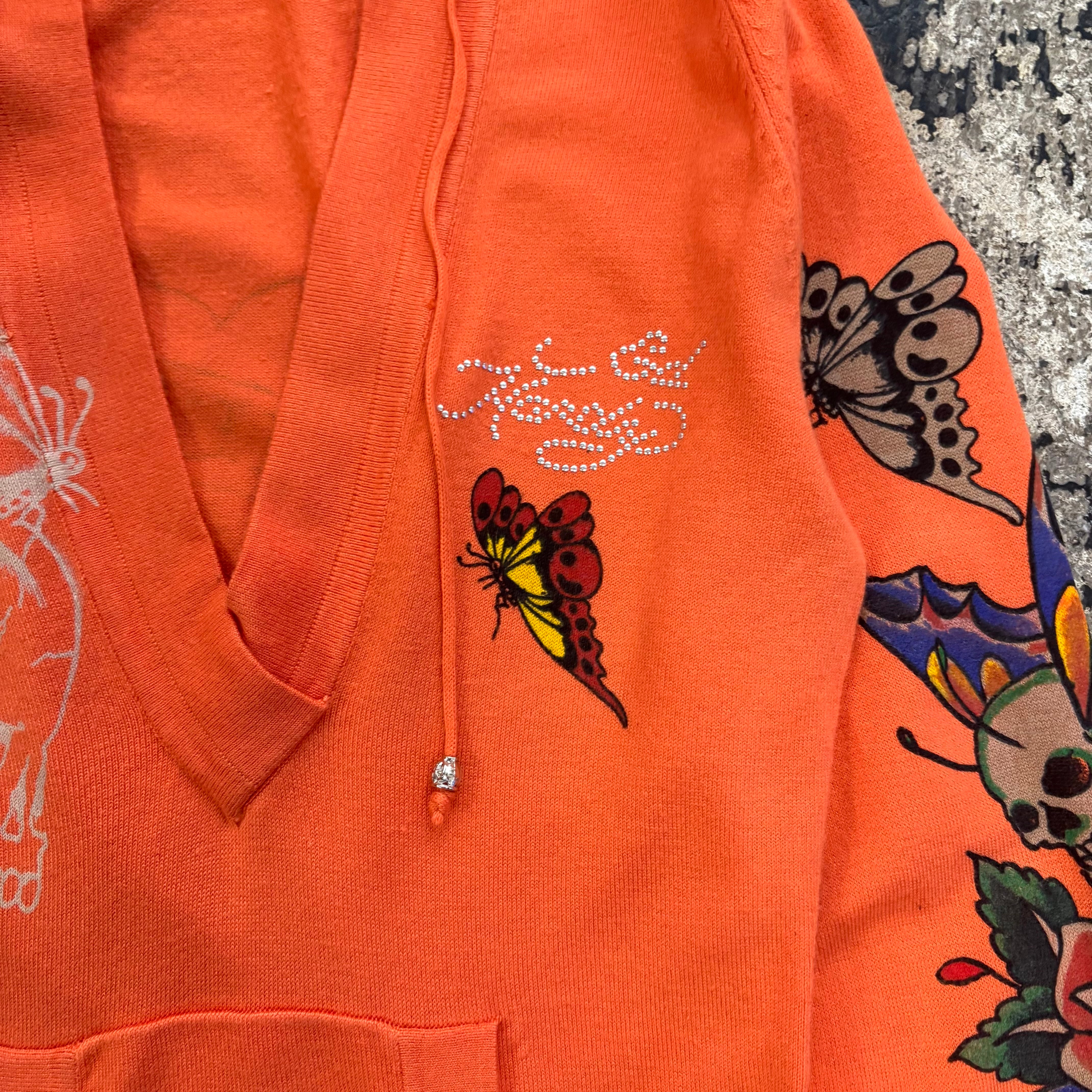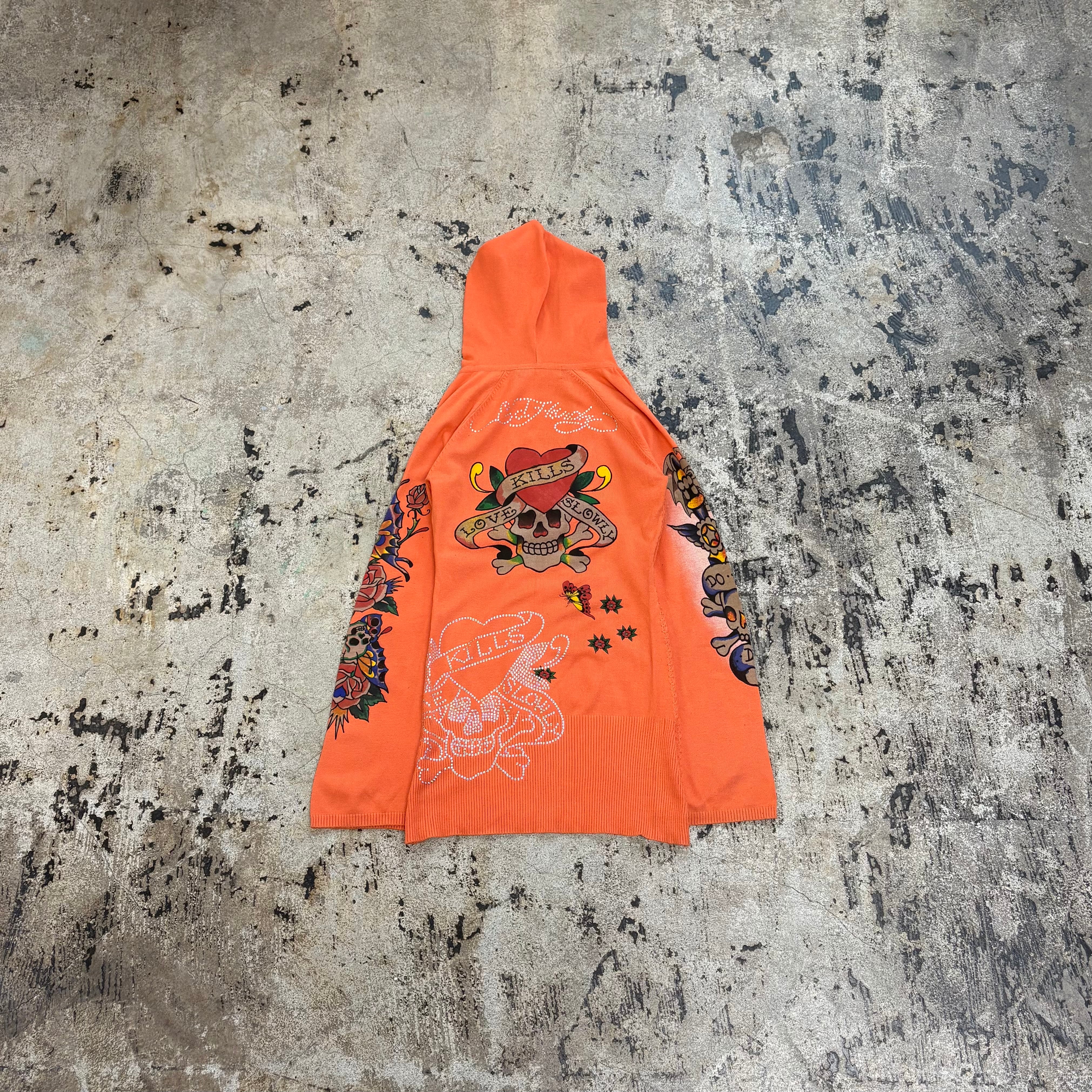 00s ED HARDY LOGO STONE KNIT HOODIE