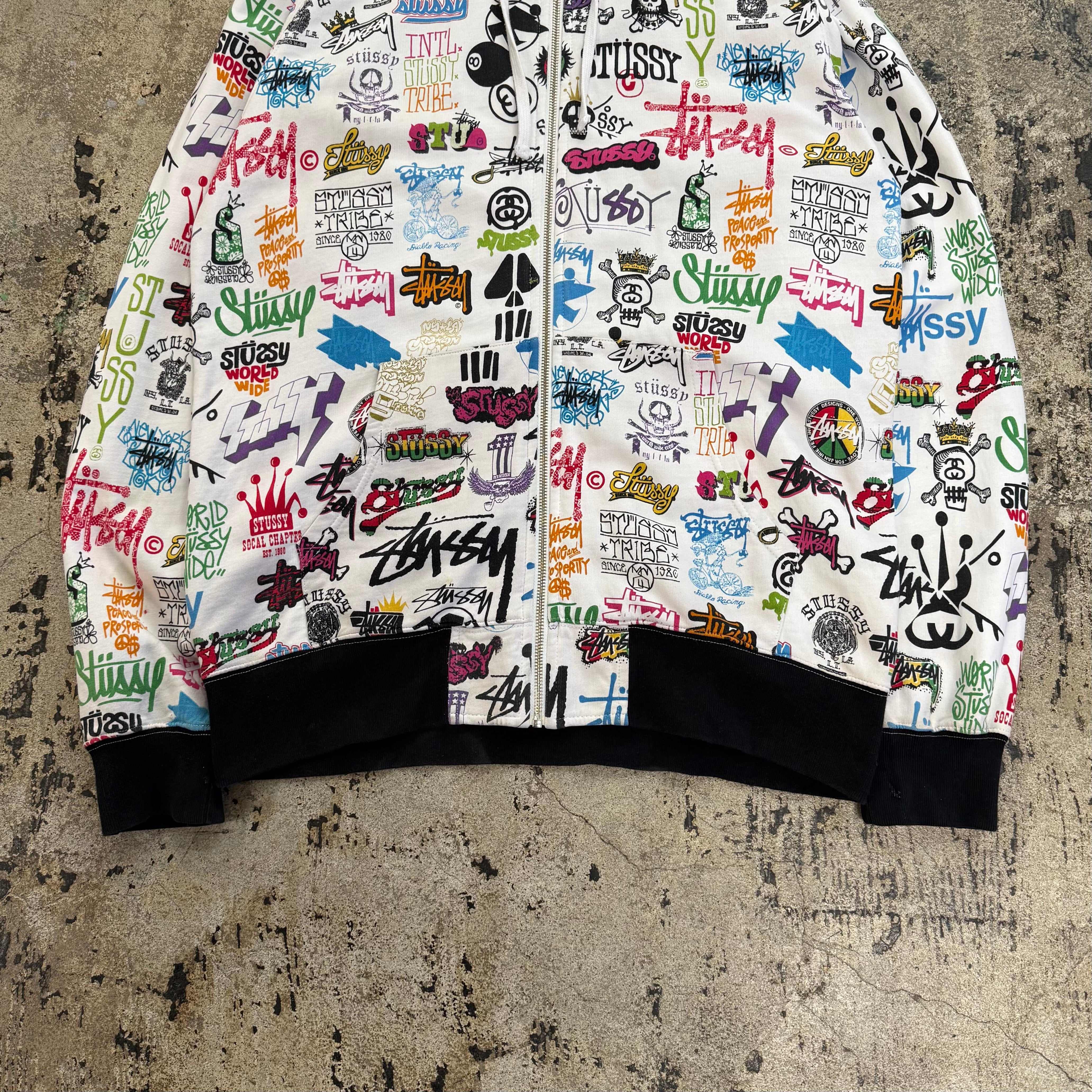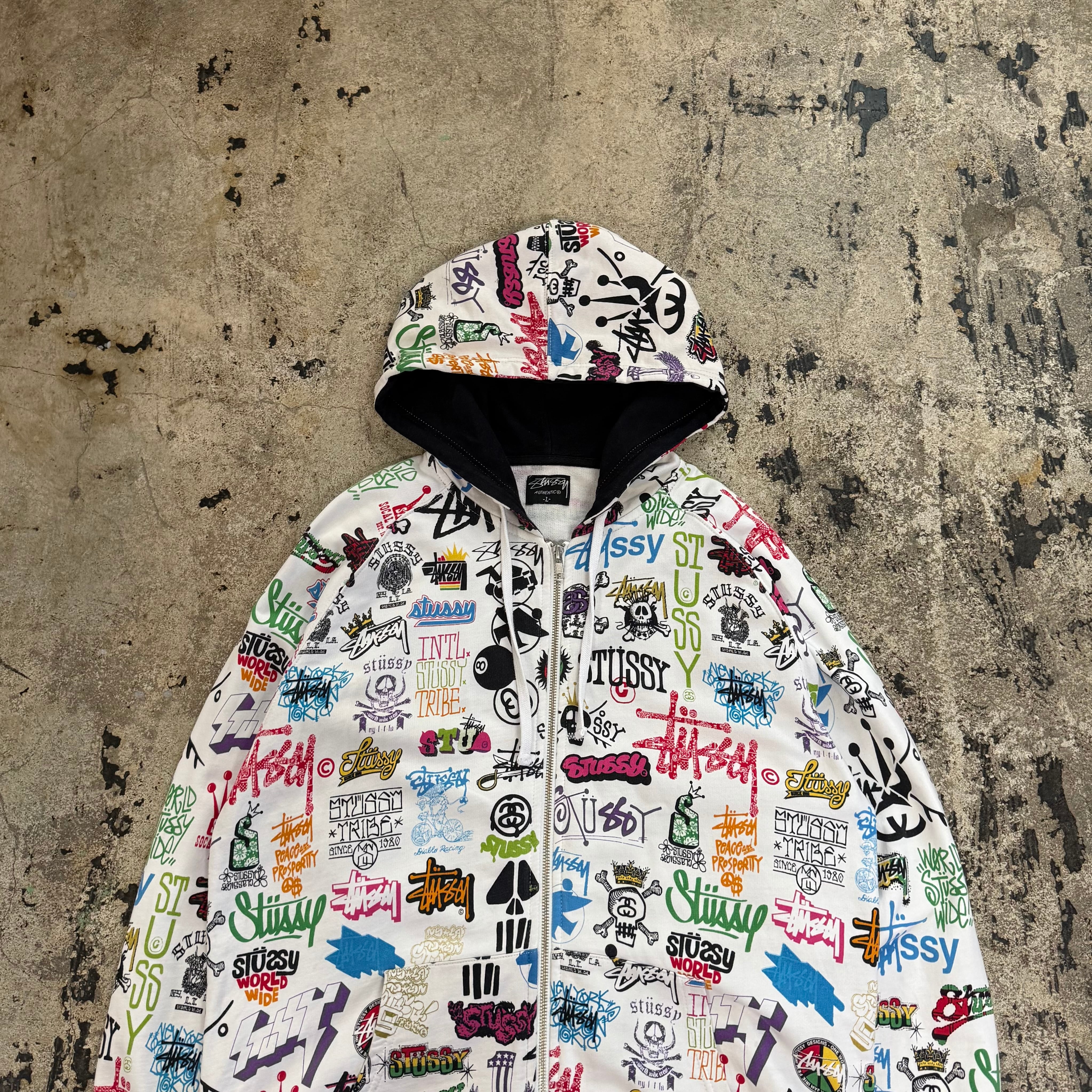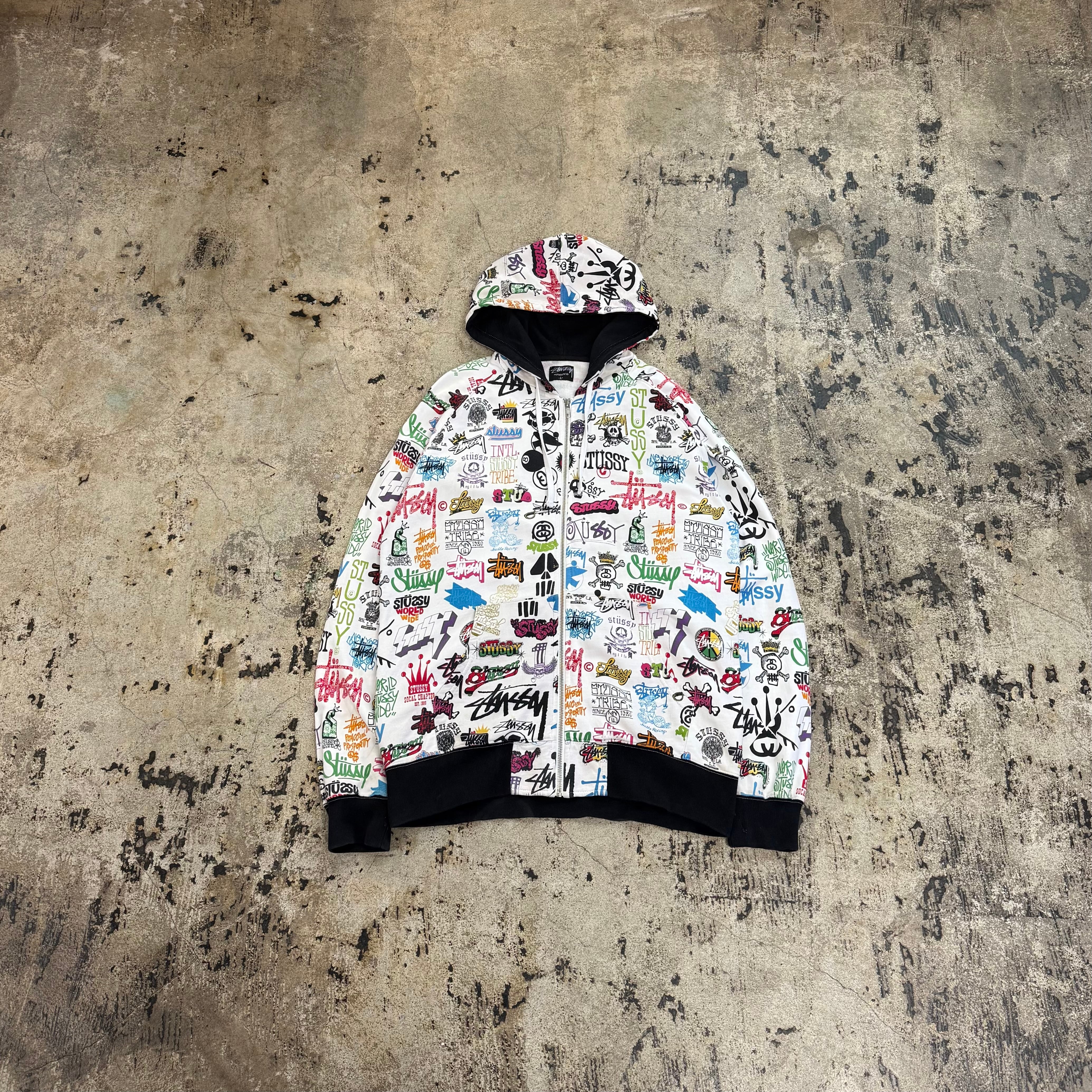 00s STUSSY ALL OVER LOGO ZIP UP HOODIE