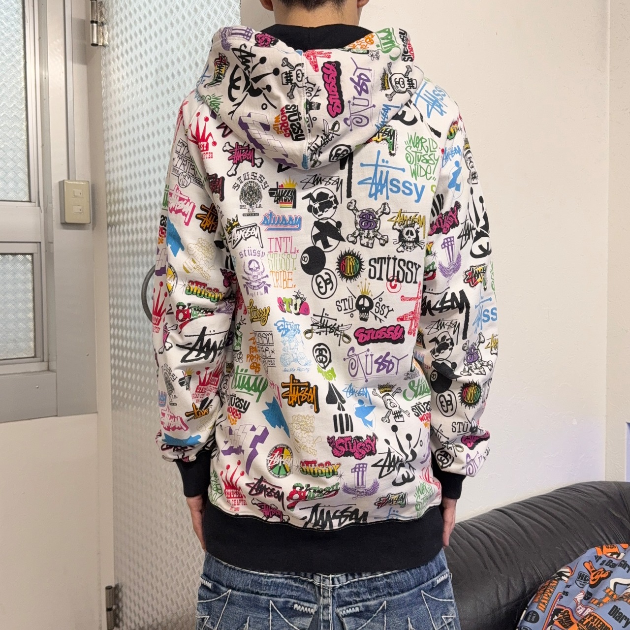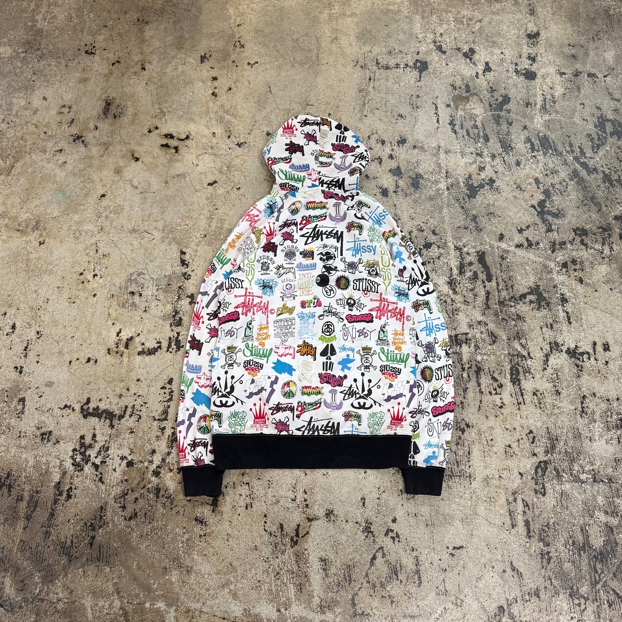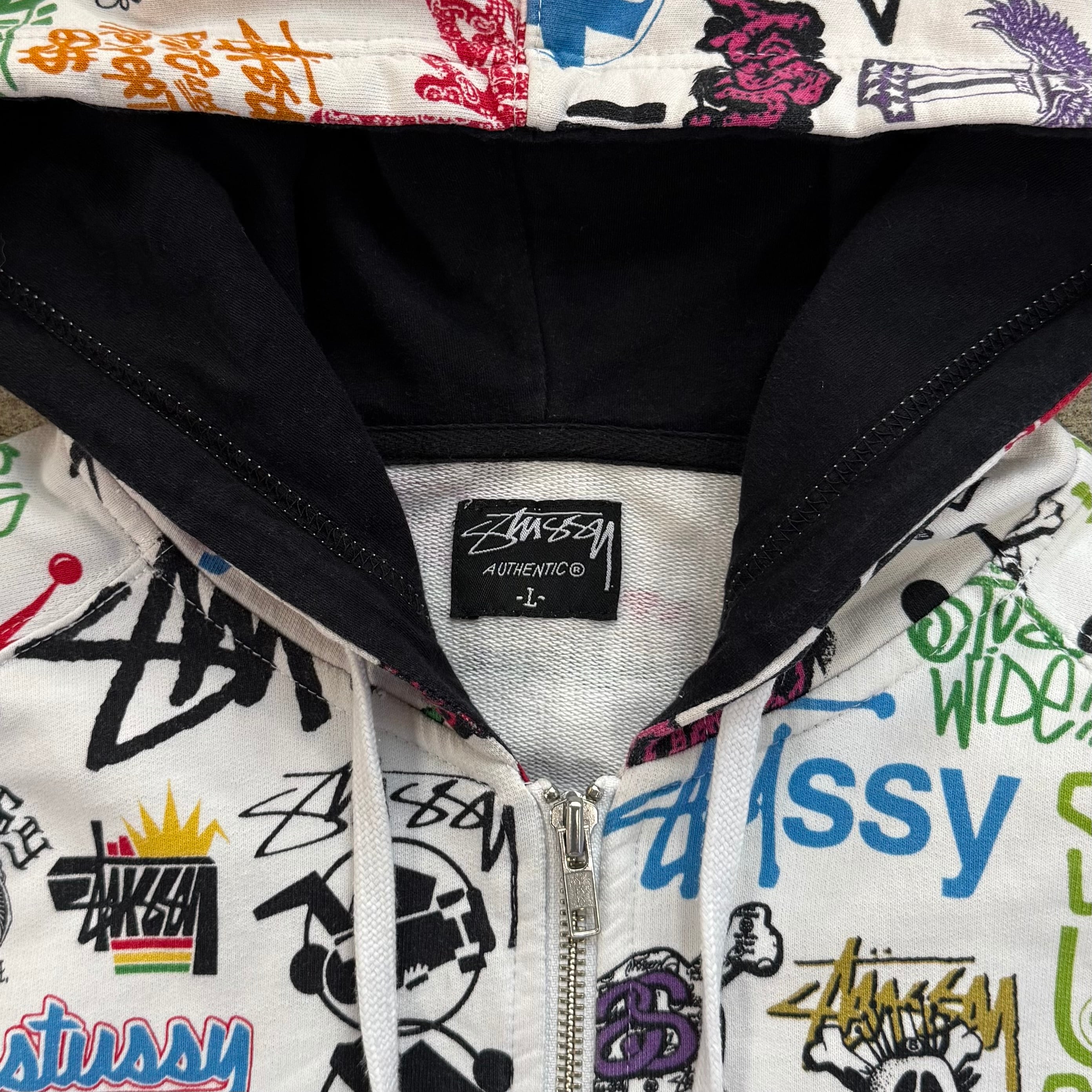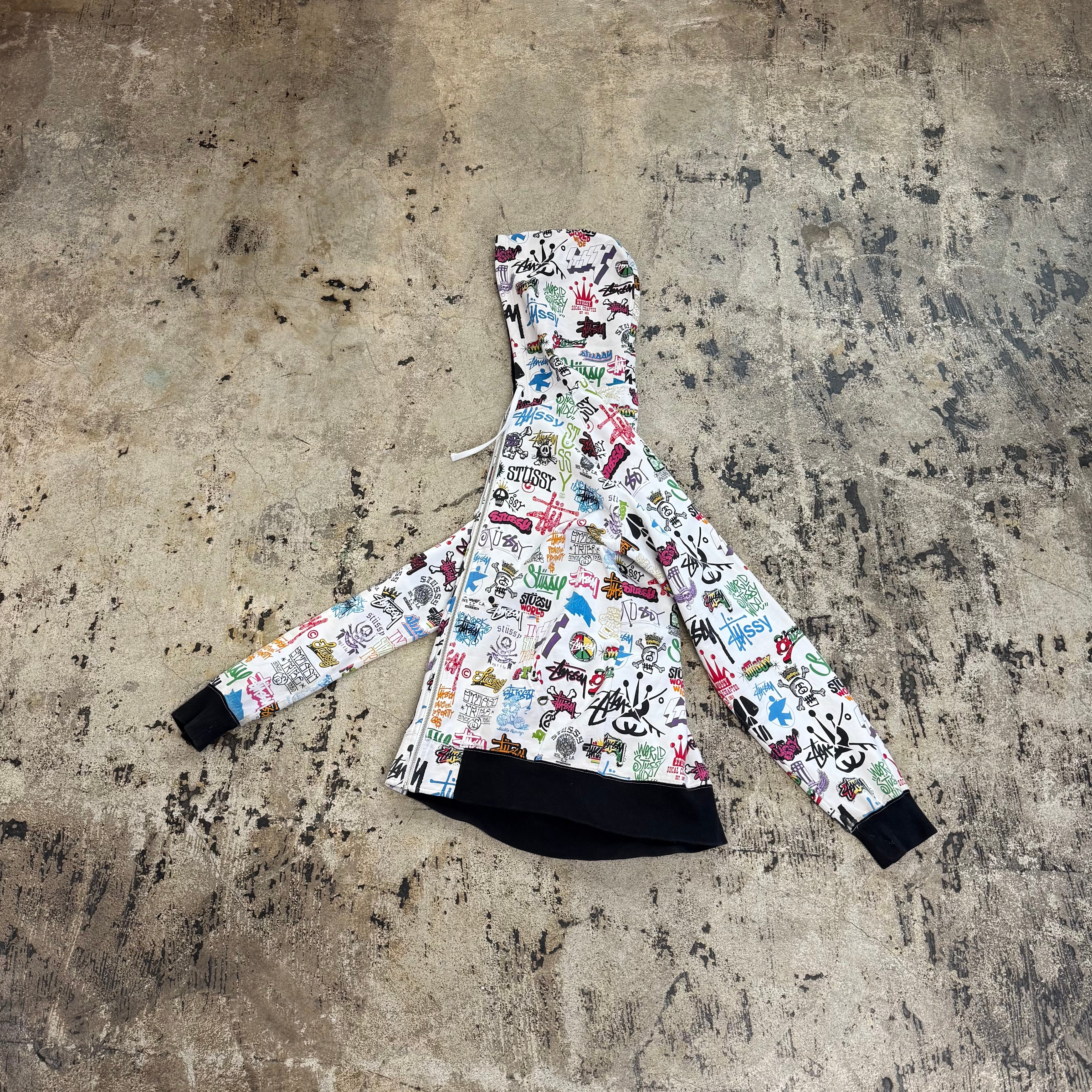 00s STUSSY ALL OVER LOGO ZIP UP HOODIE