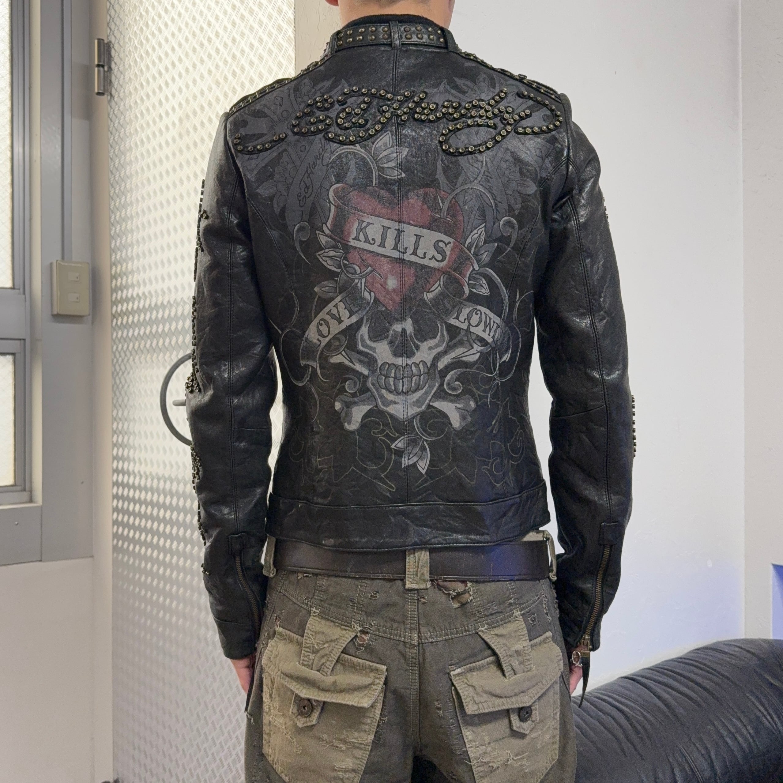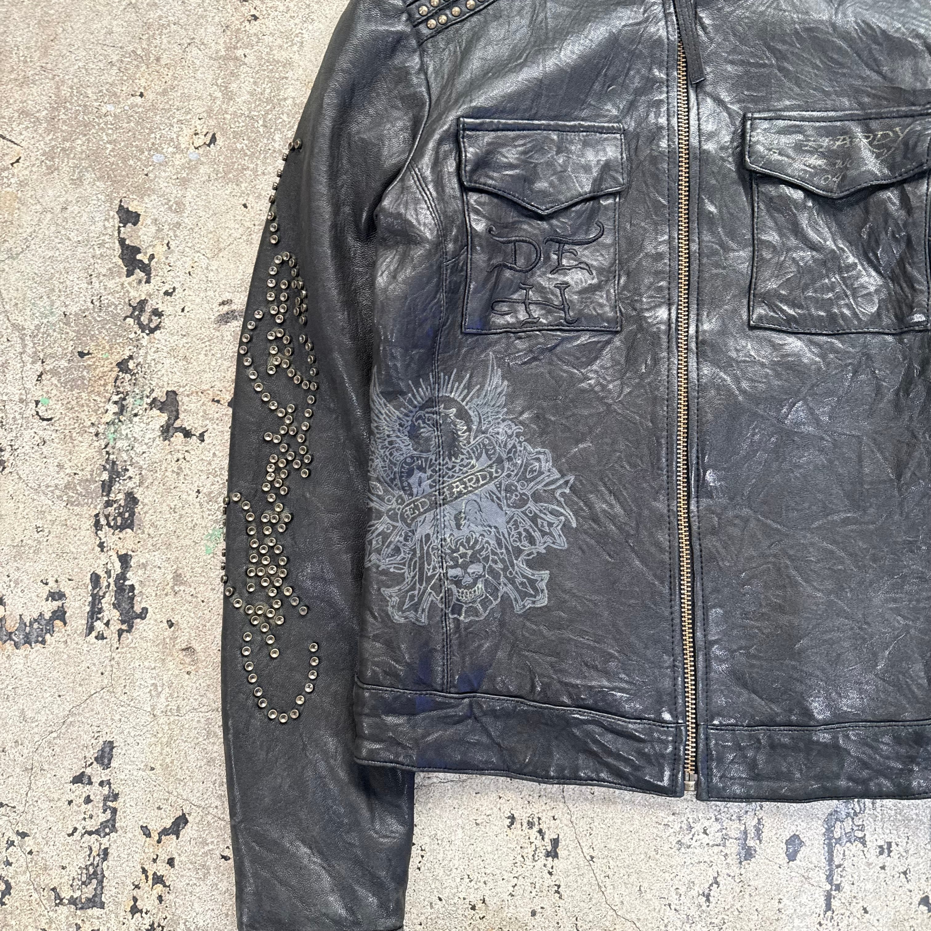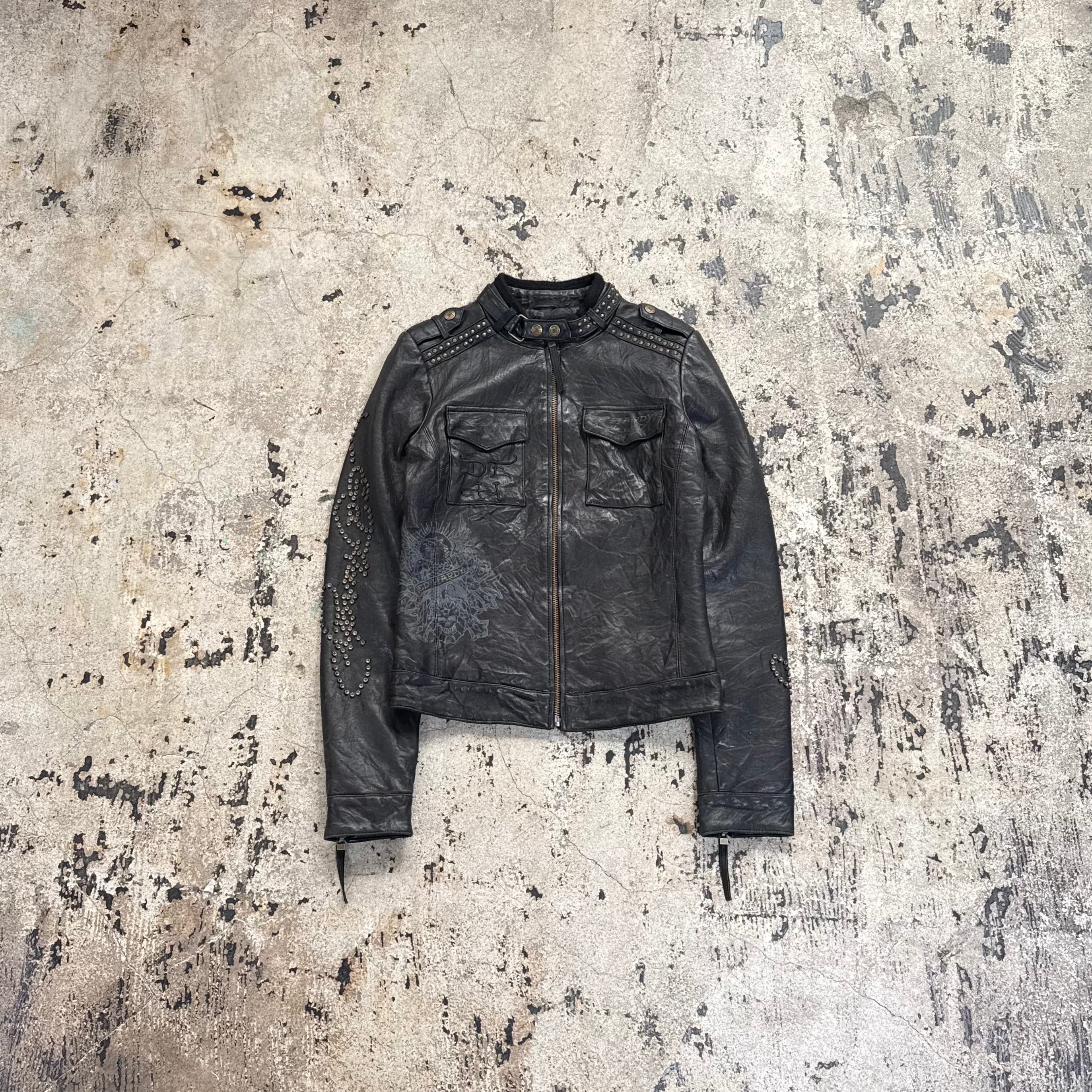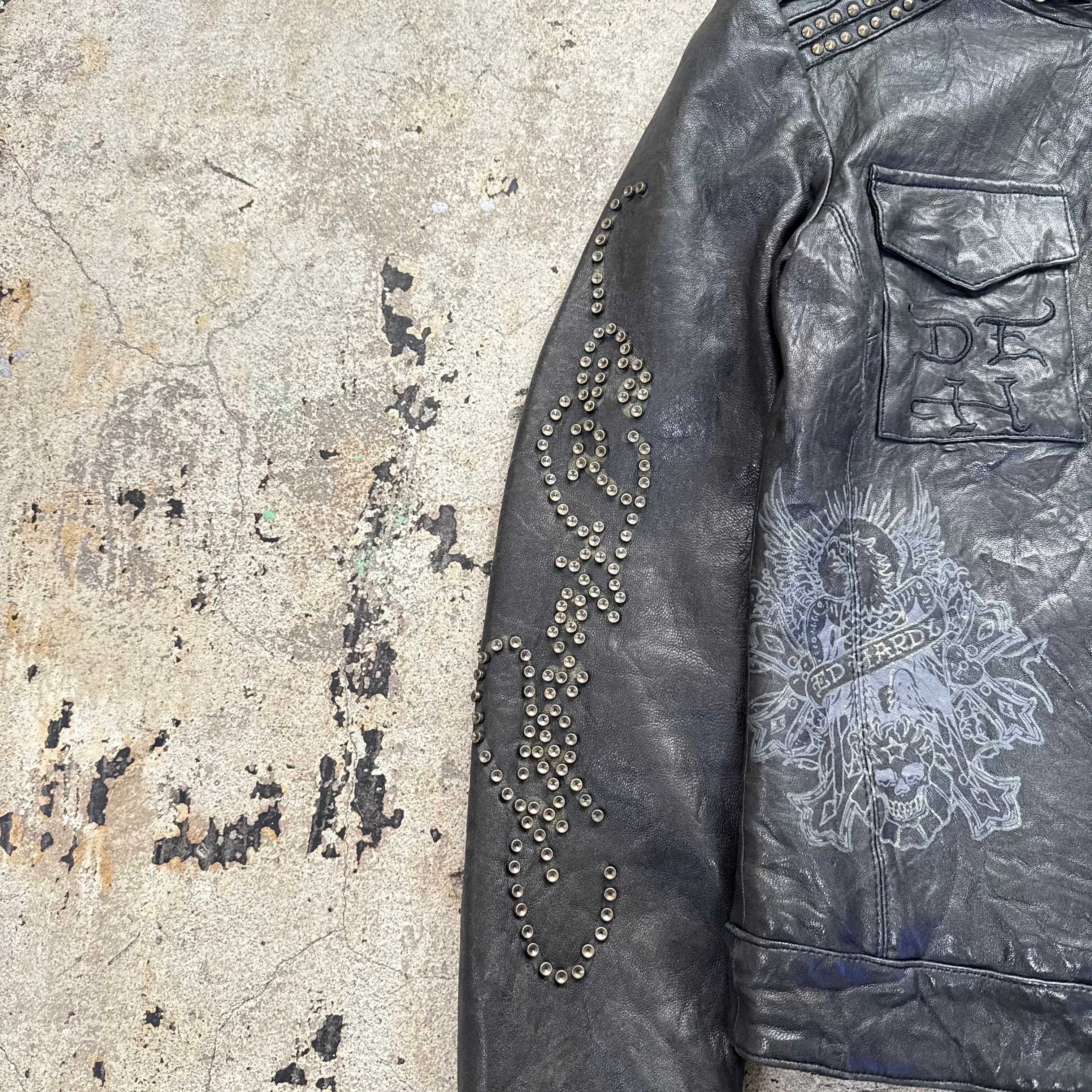 00s ED HARDY SKULL STUDS LEATHER JACKET
