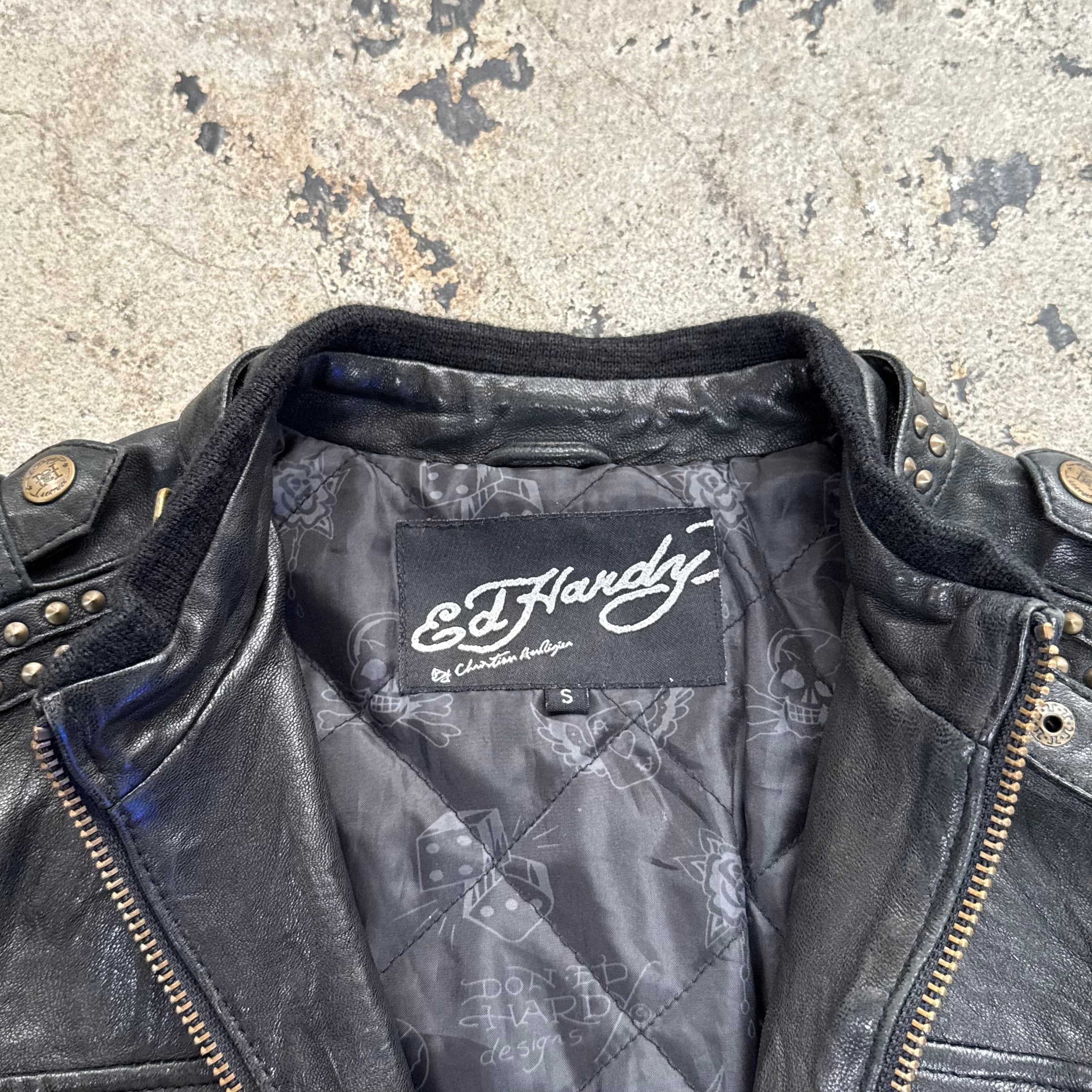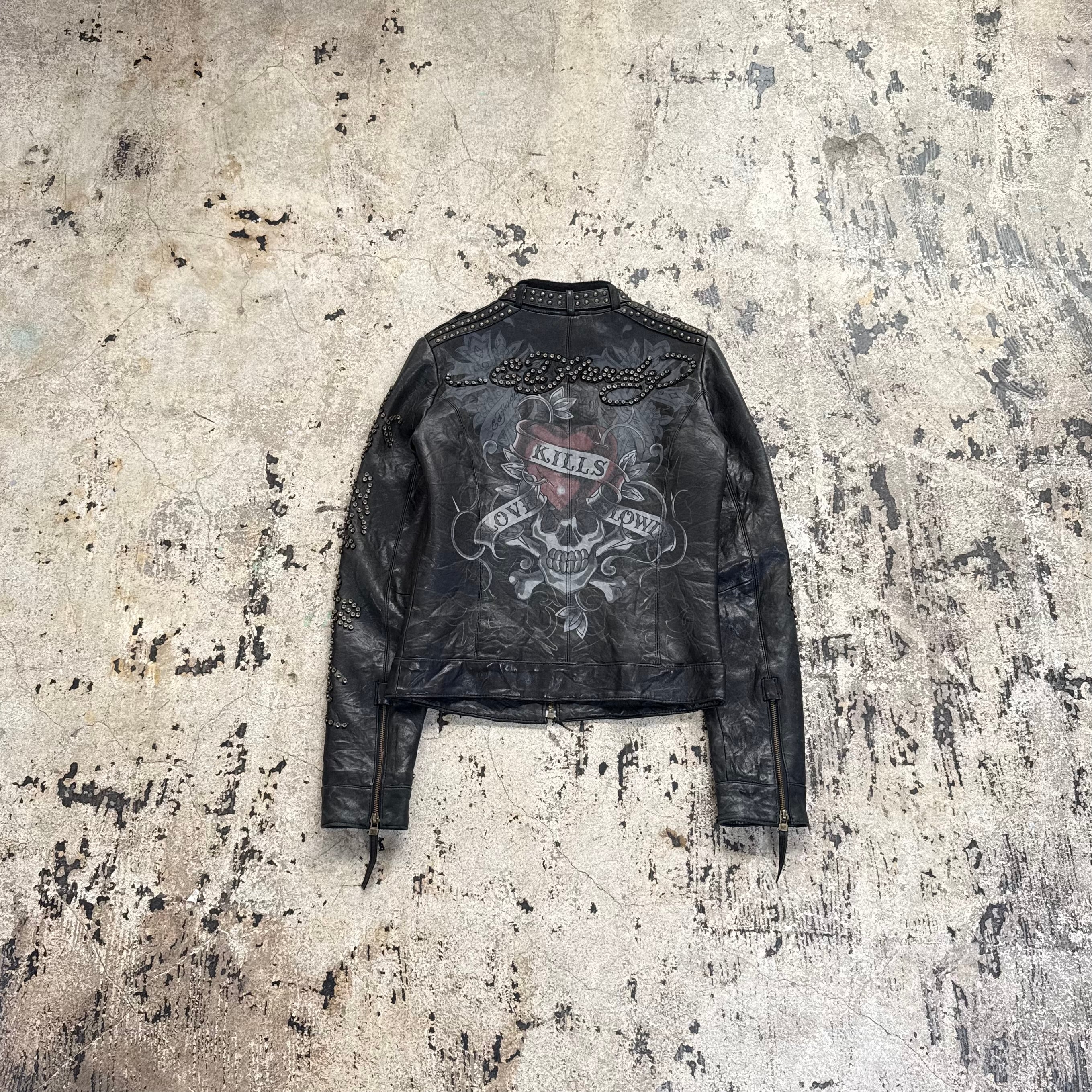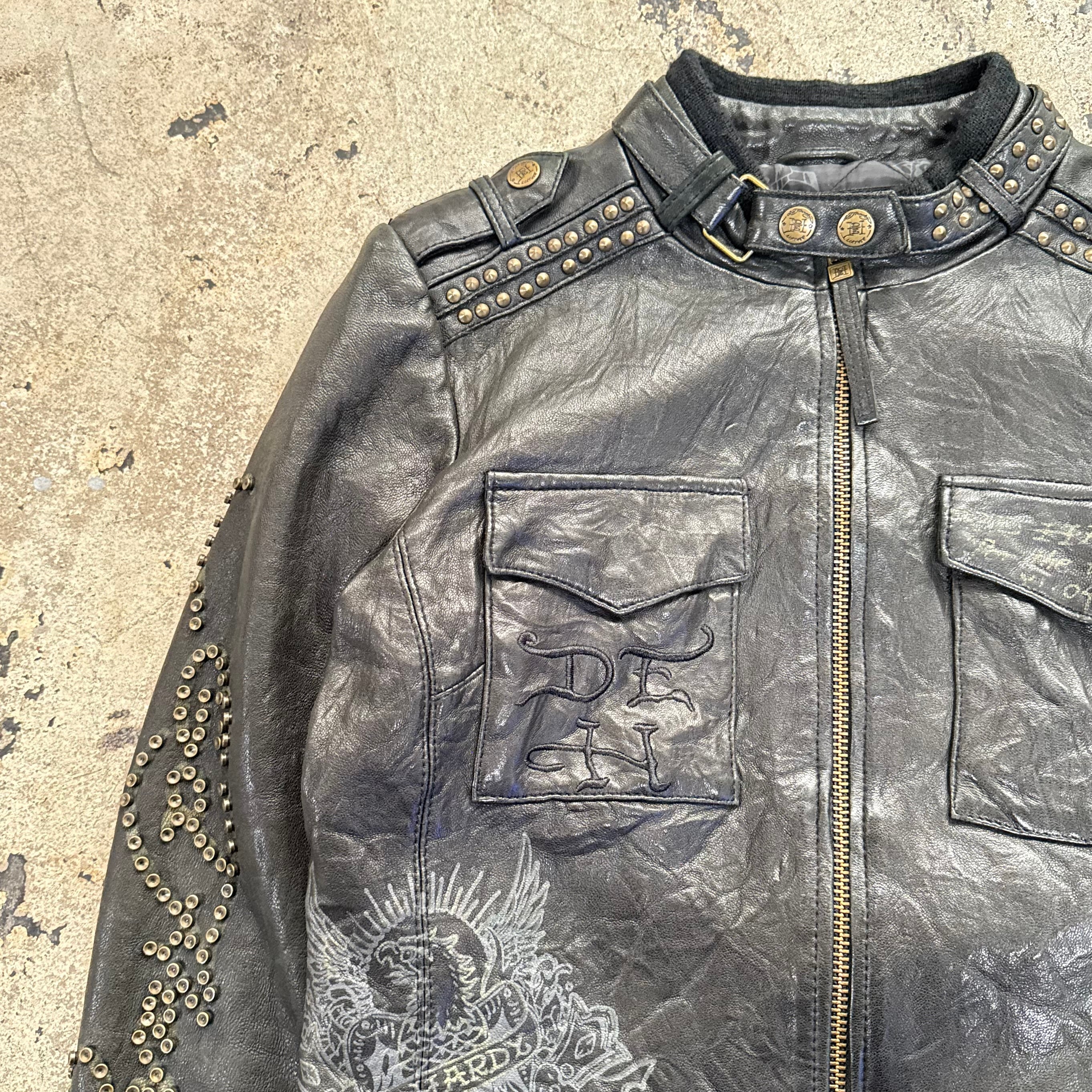 00s ED HARDY SKULL STUDS LEATHER JACKET