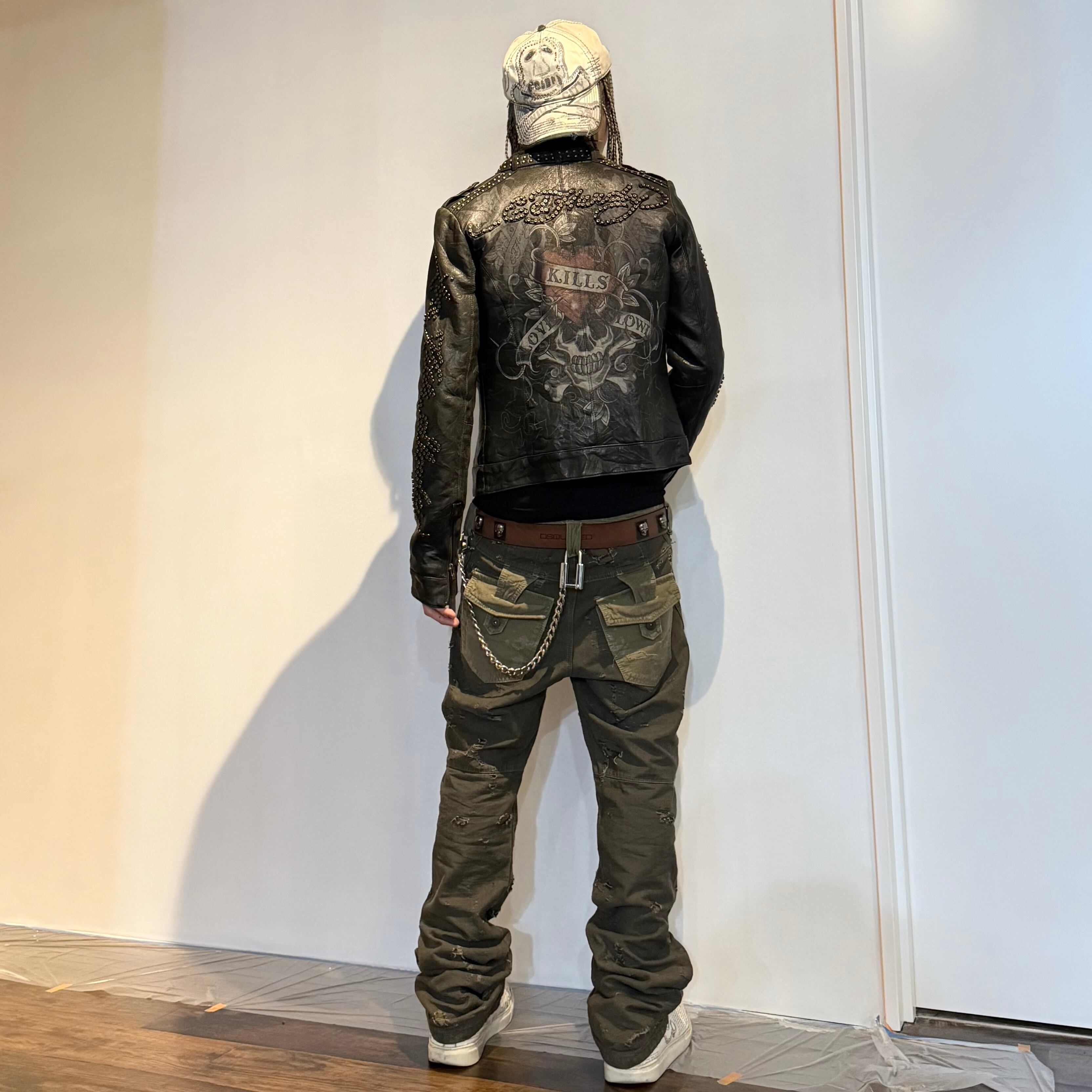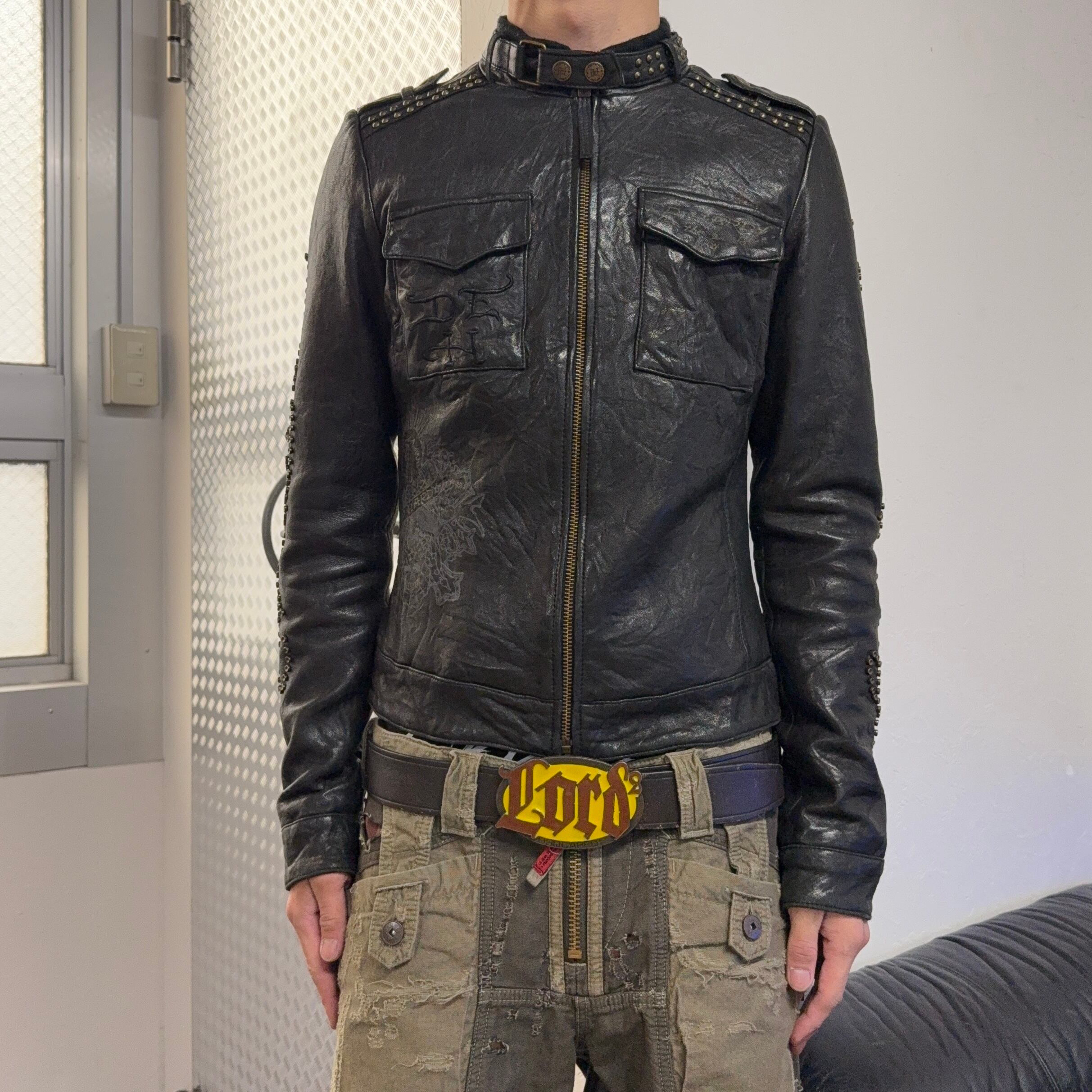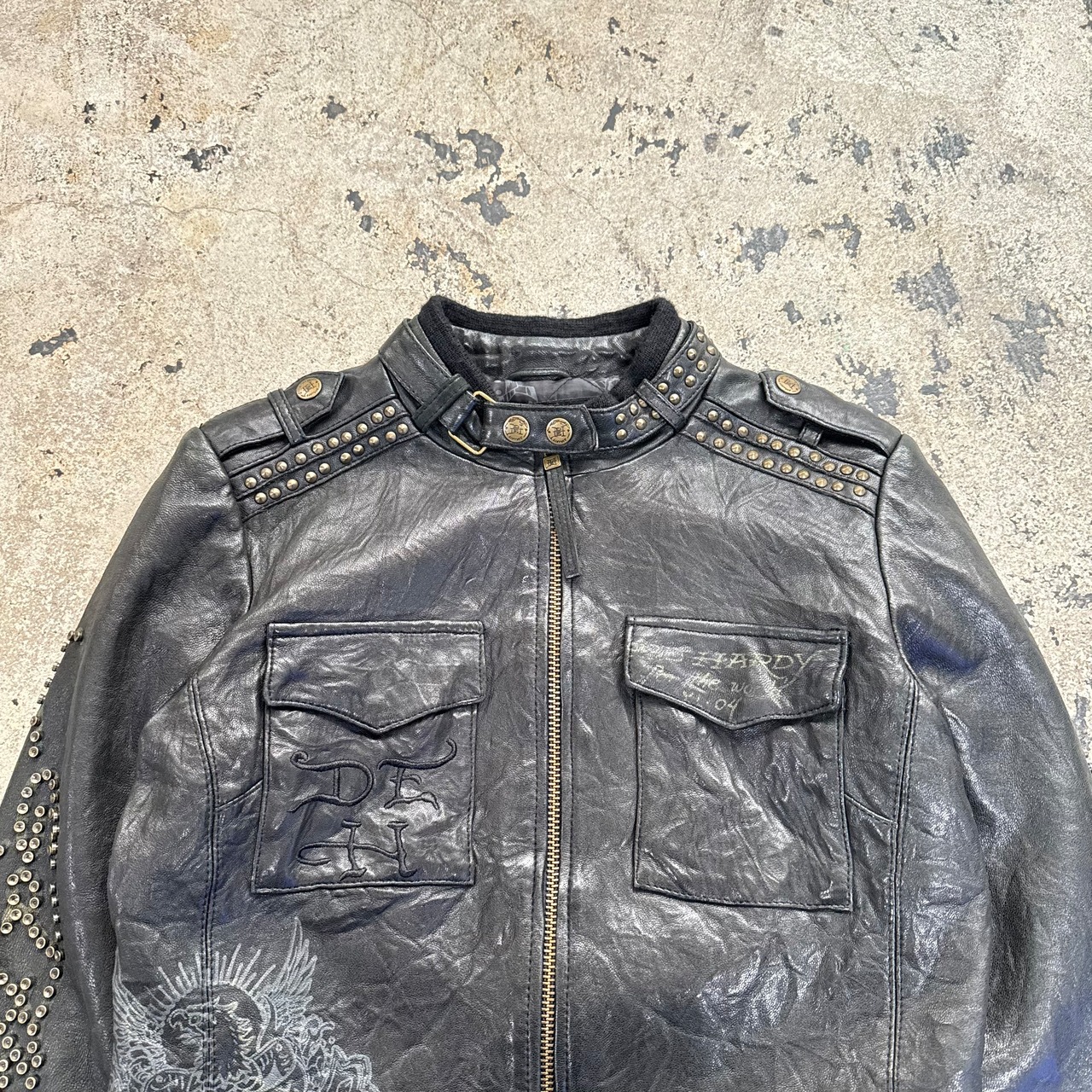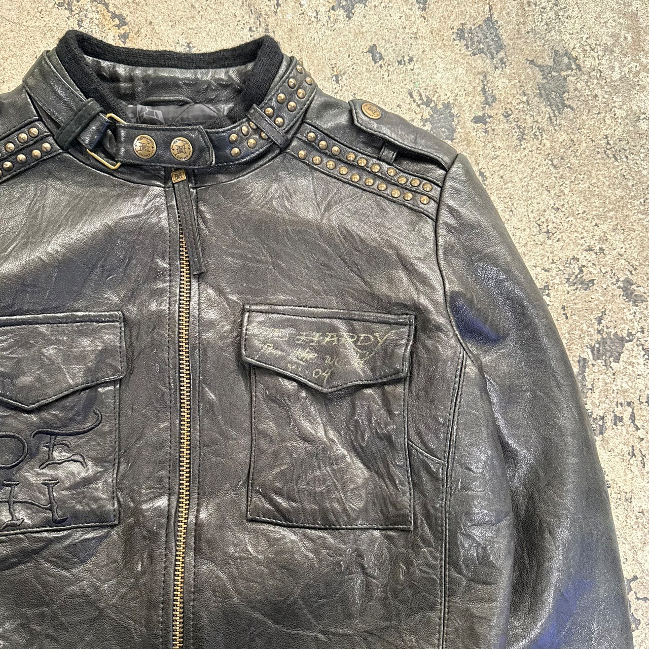00s ED HARDY SKULL STUDS LEATHER JACKET