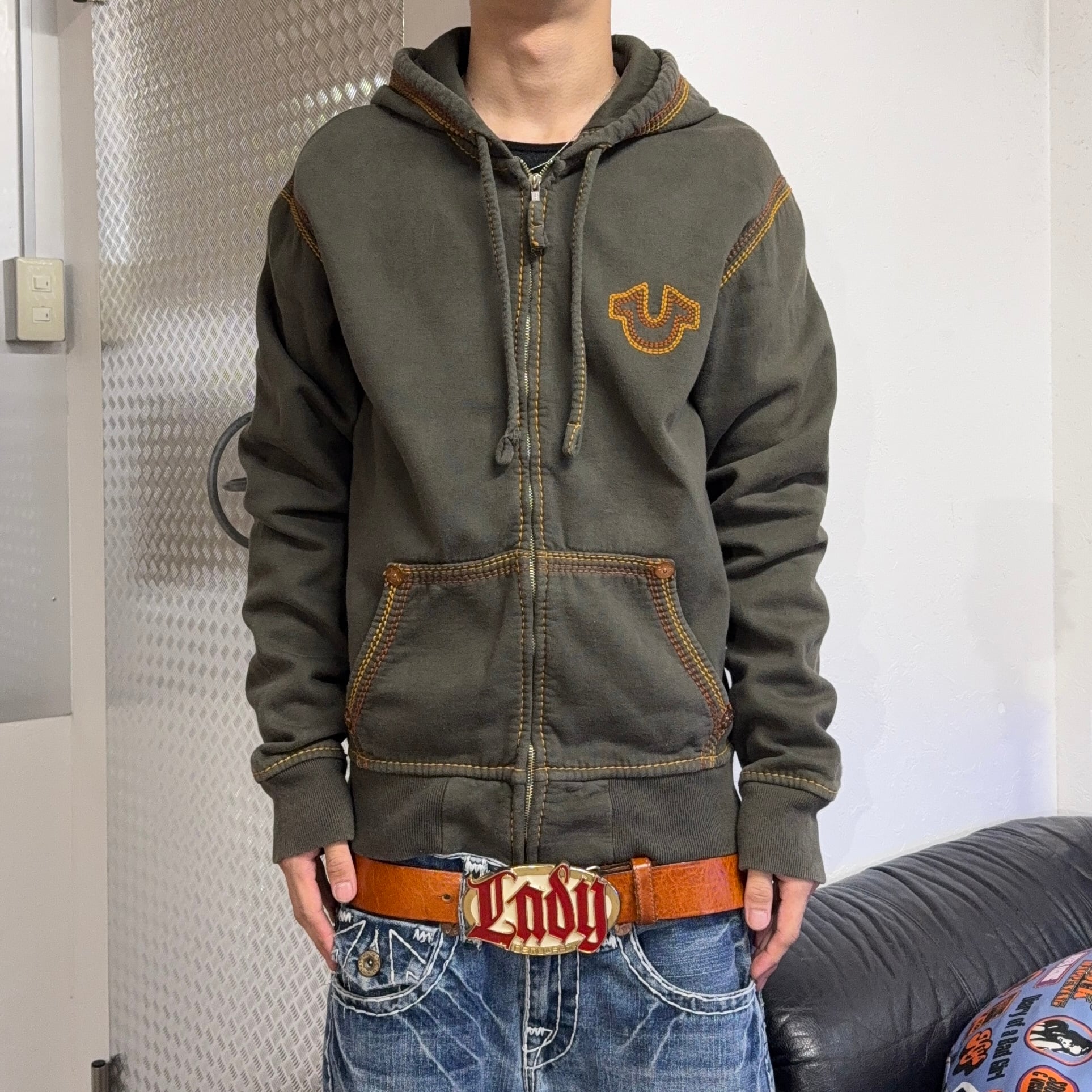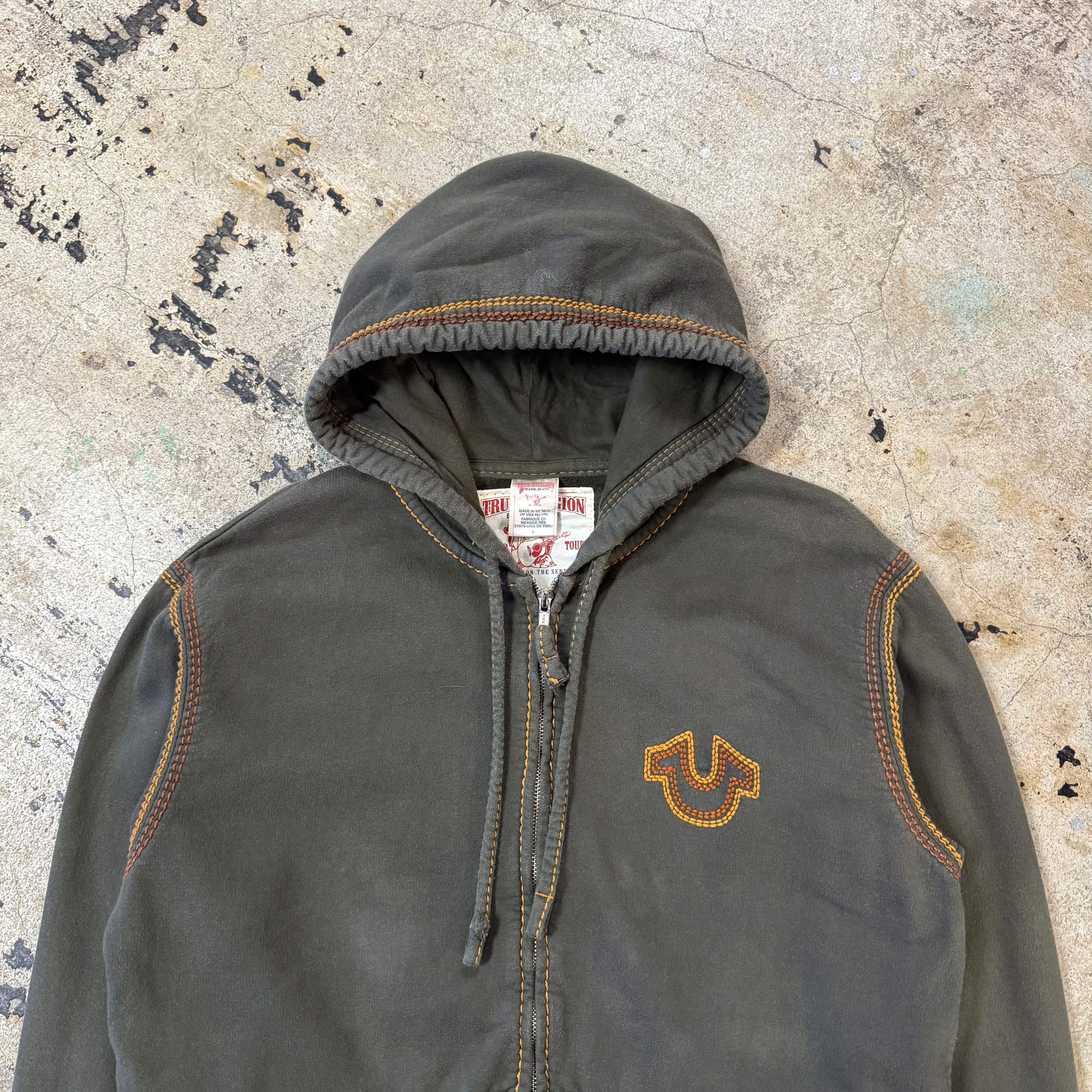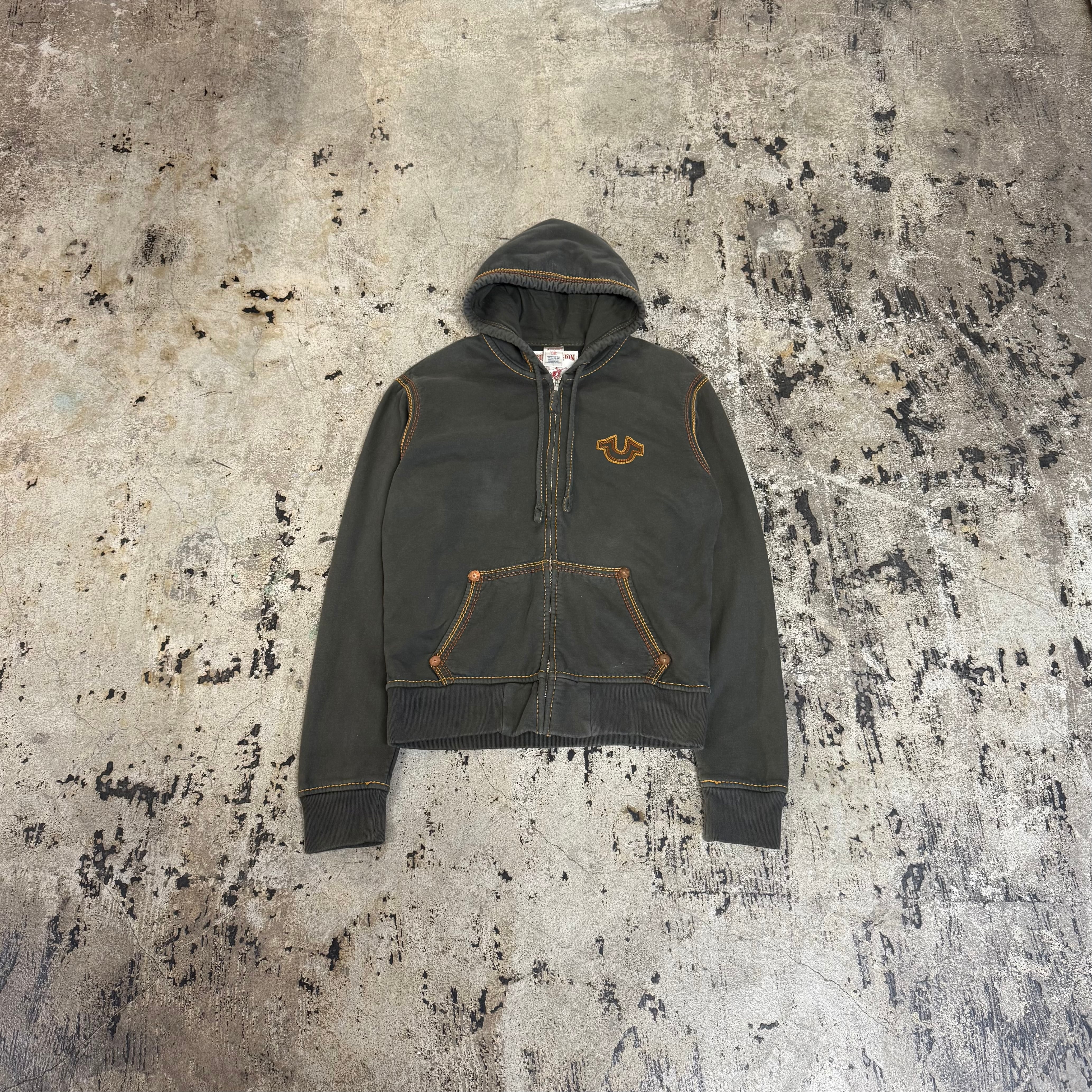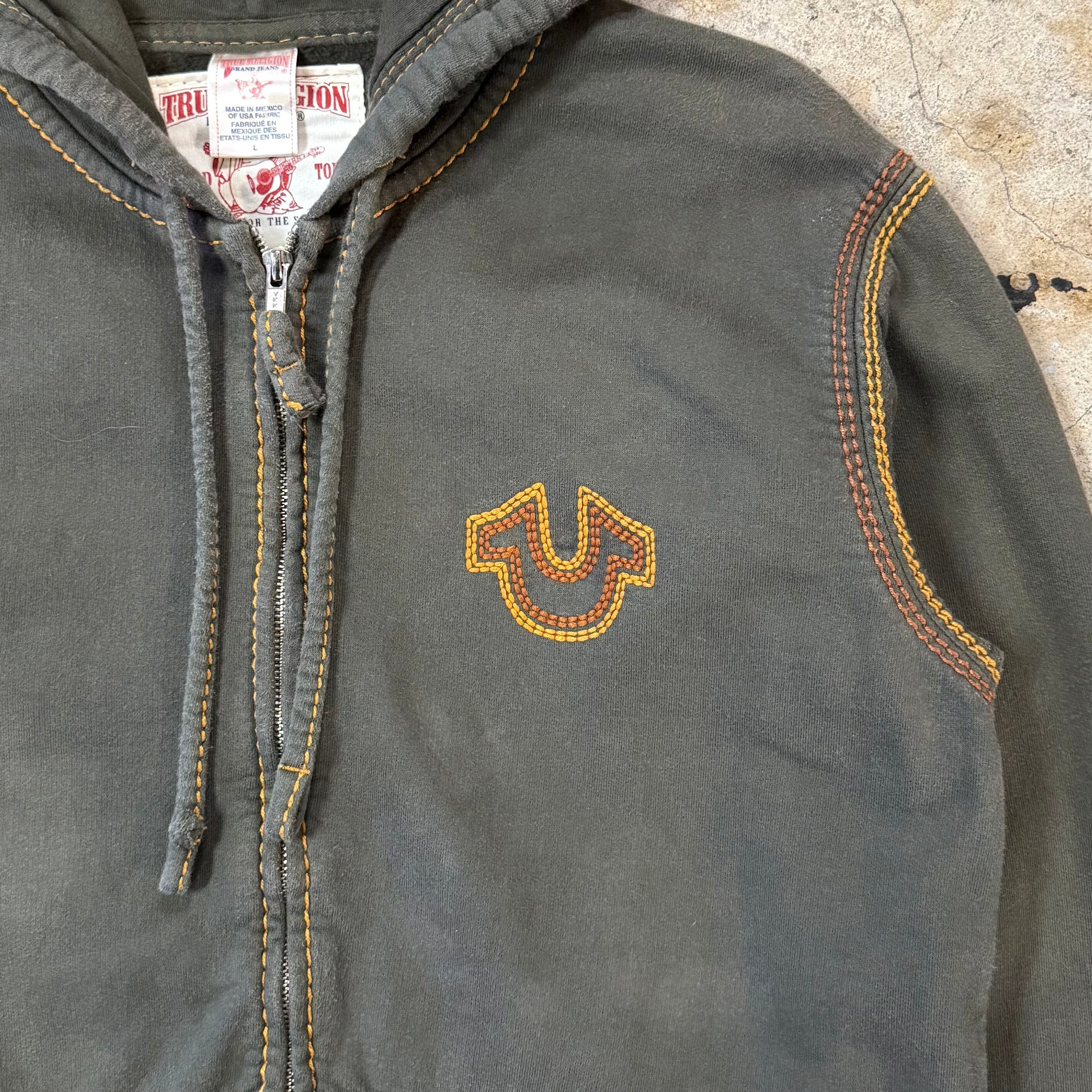 00s TRUE RELIGION LOGO STITCH ZIP UP HOODIE