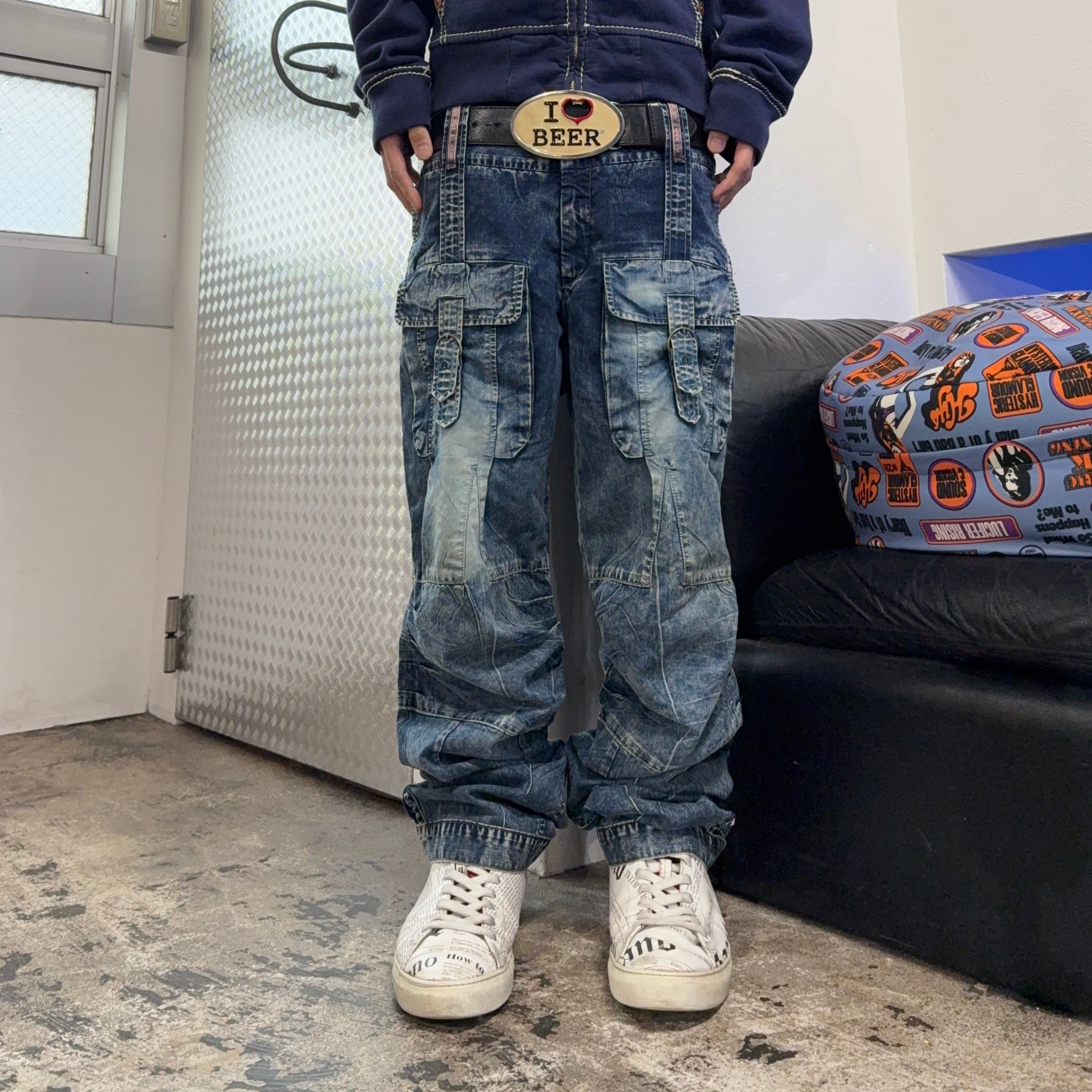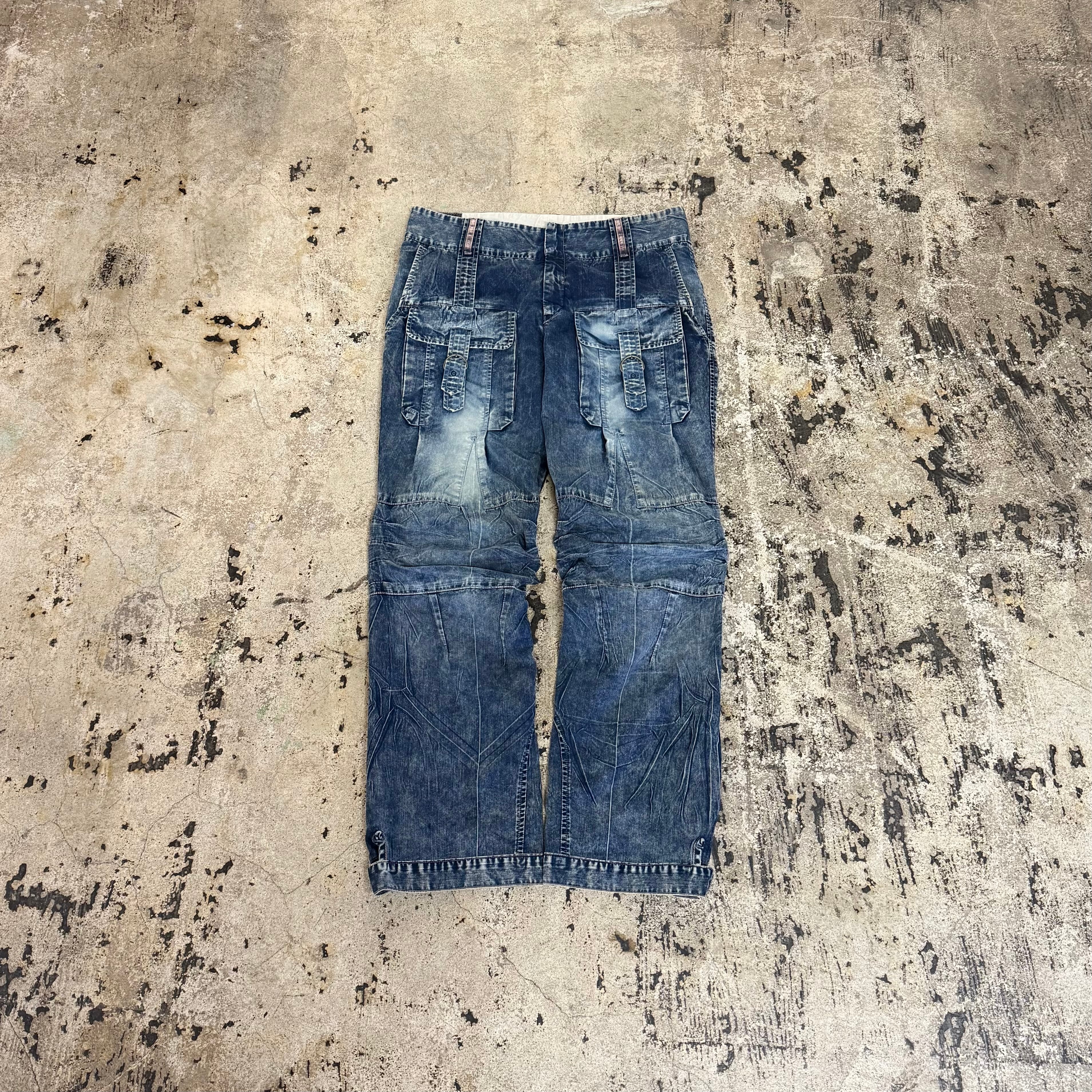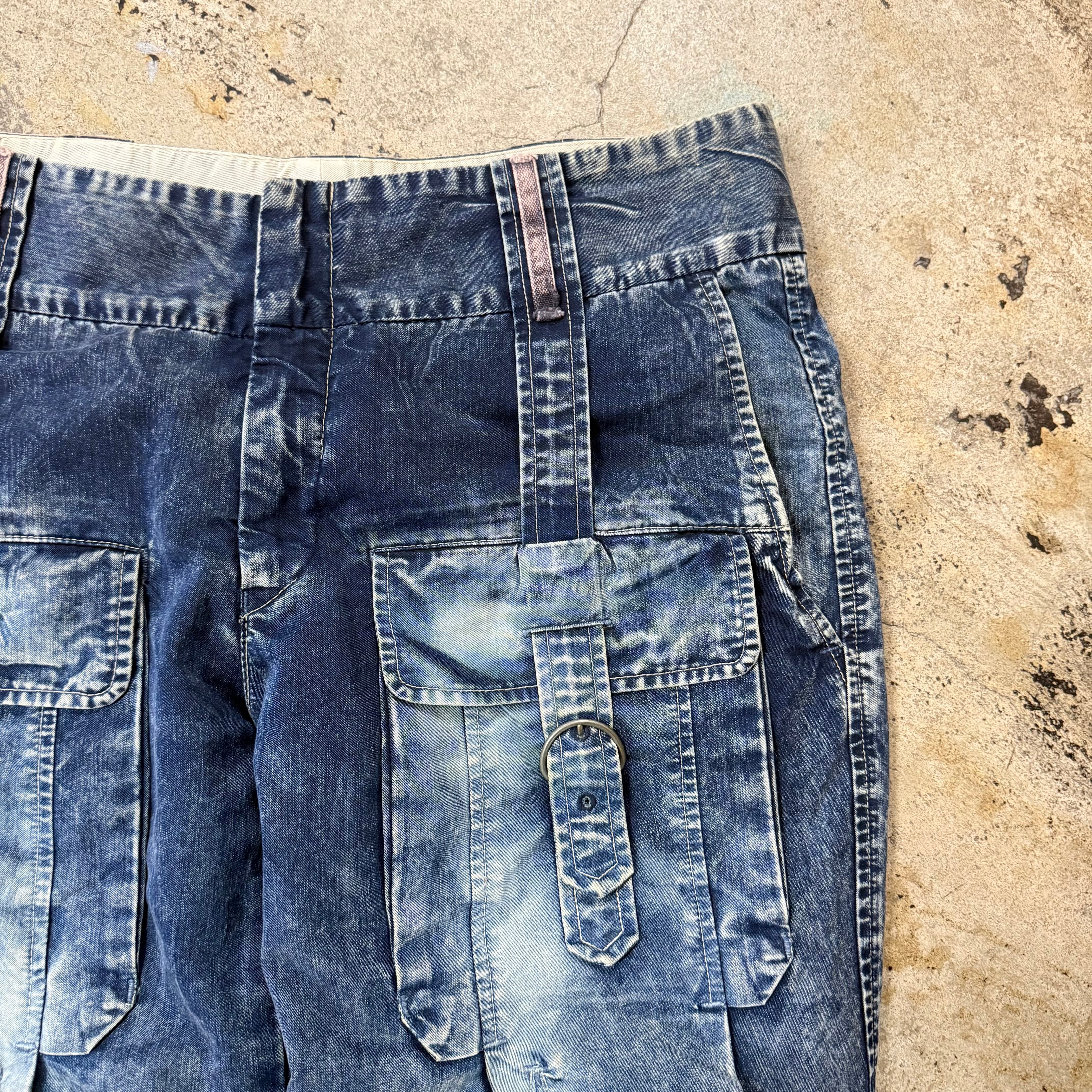 00s MARITHE + FRANCOIS GIRBAUD MULTI POCKET WASHED CARGO DENIM