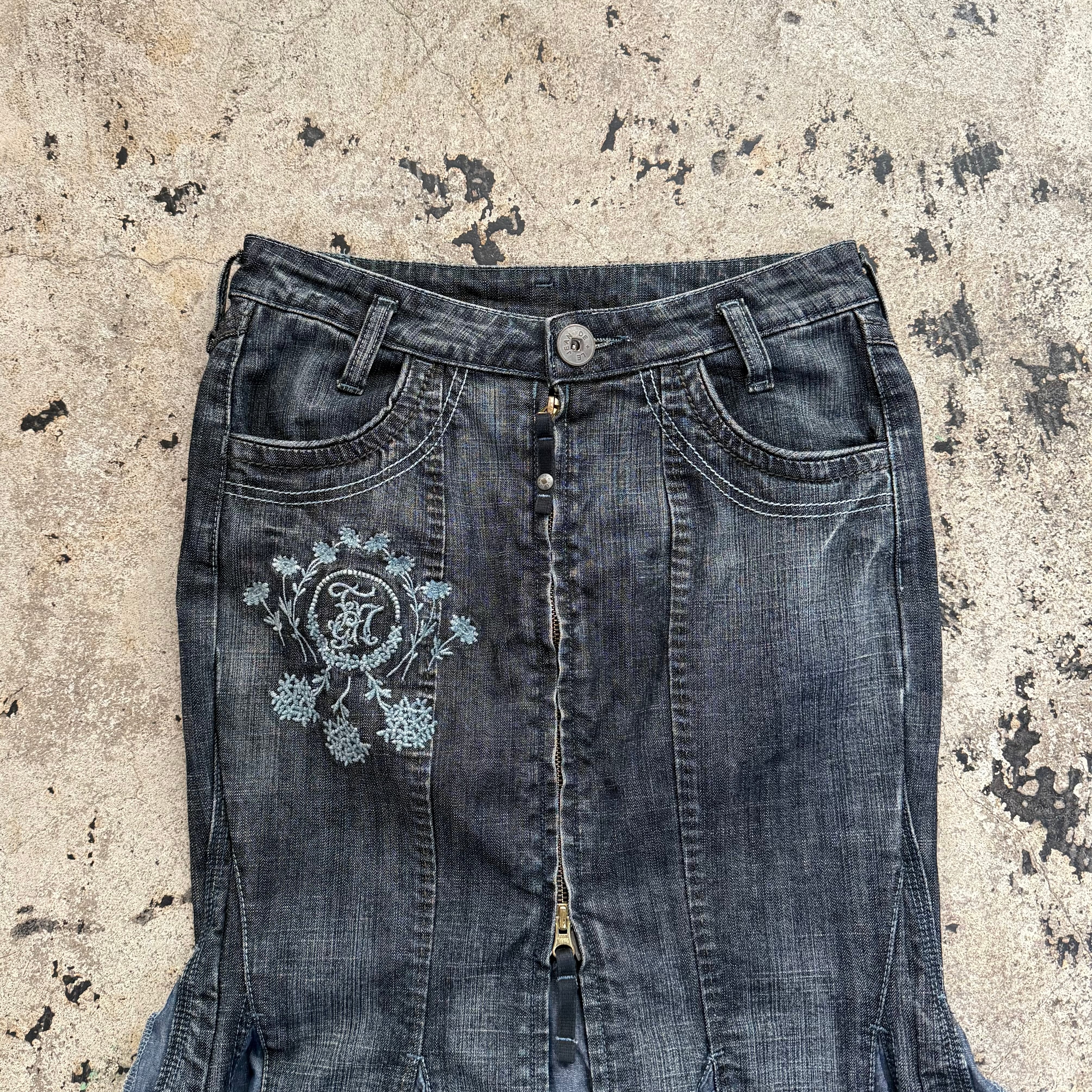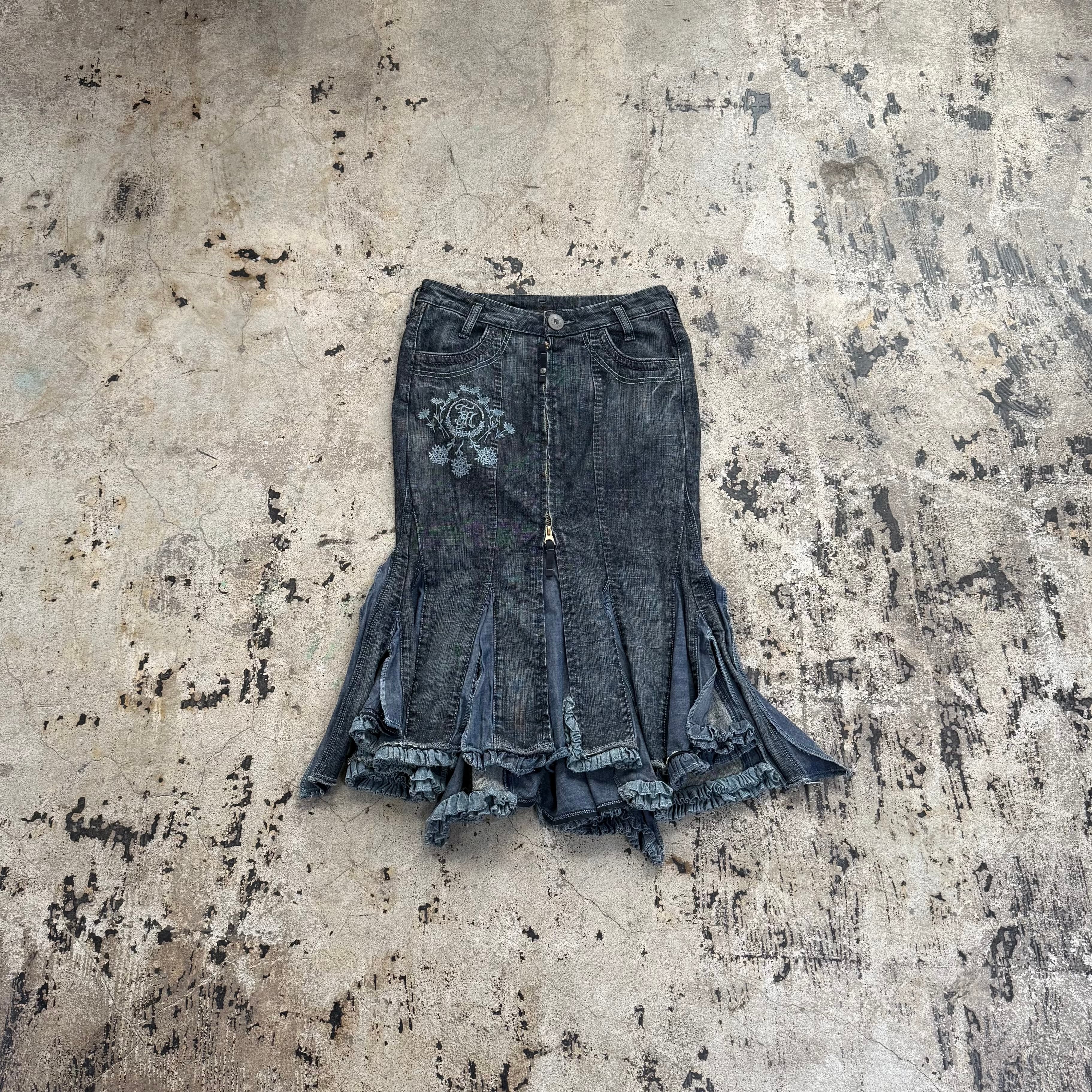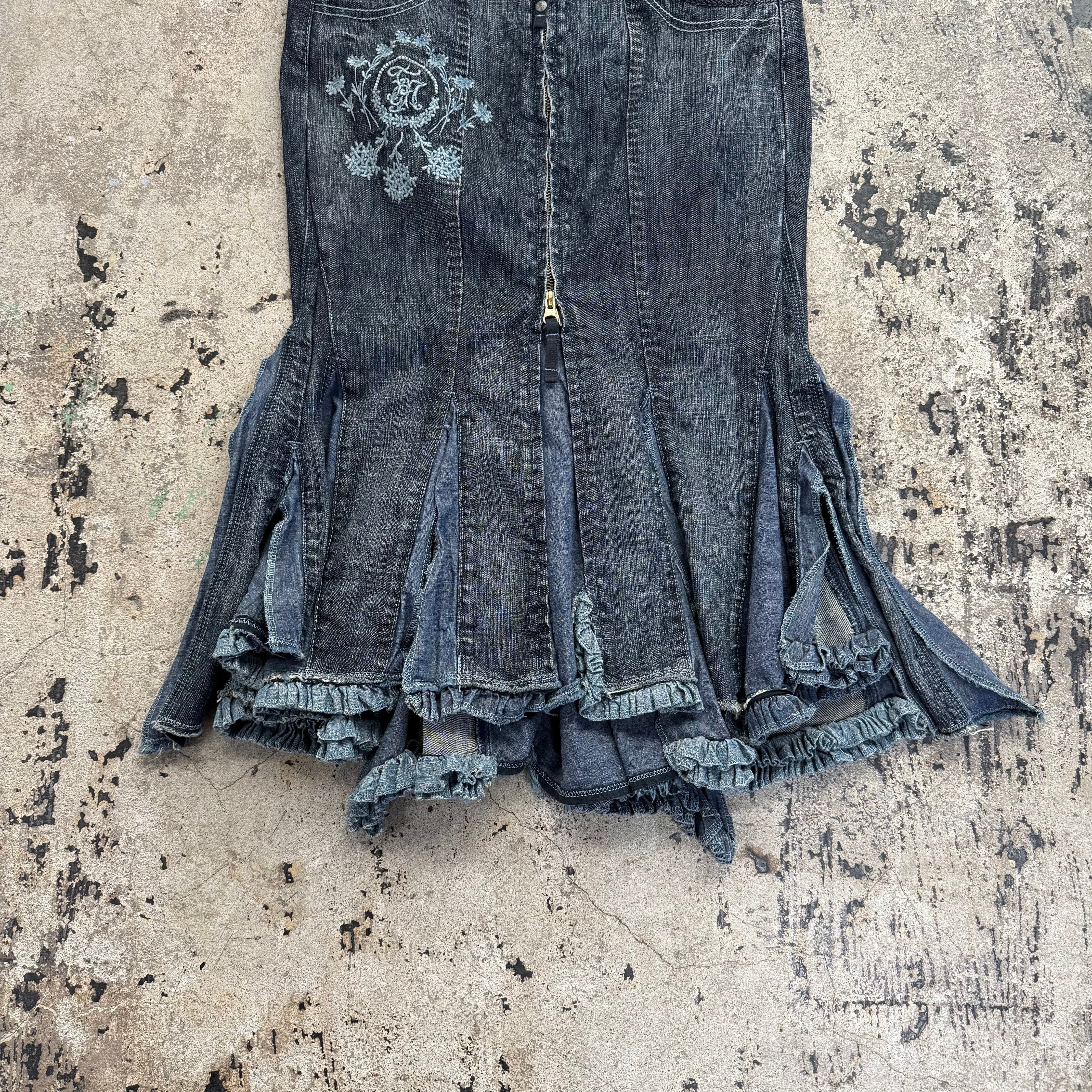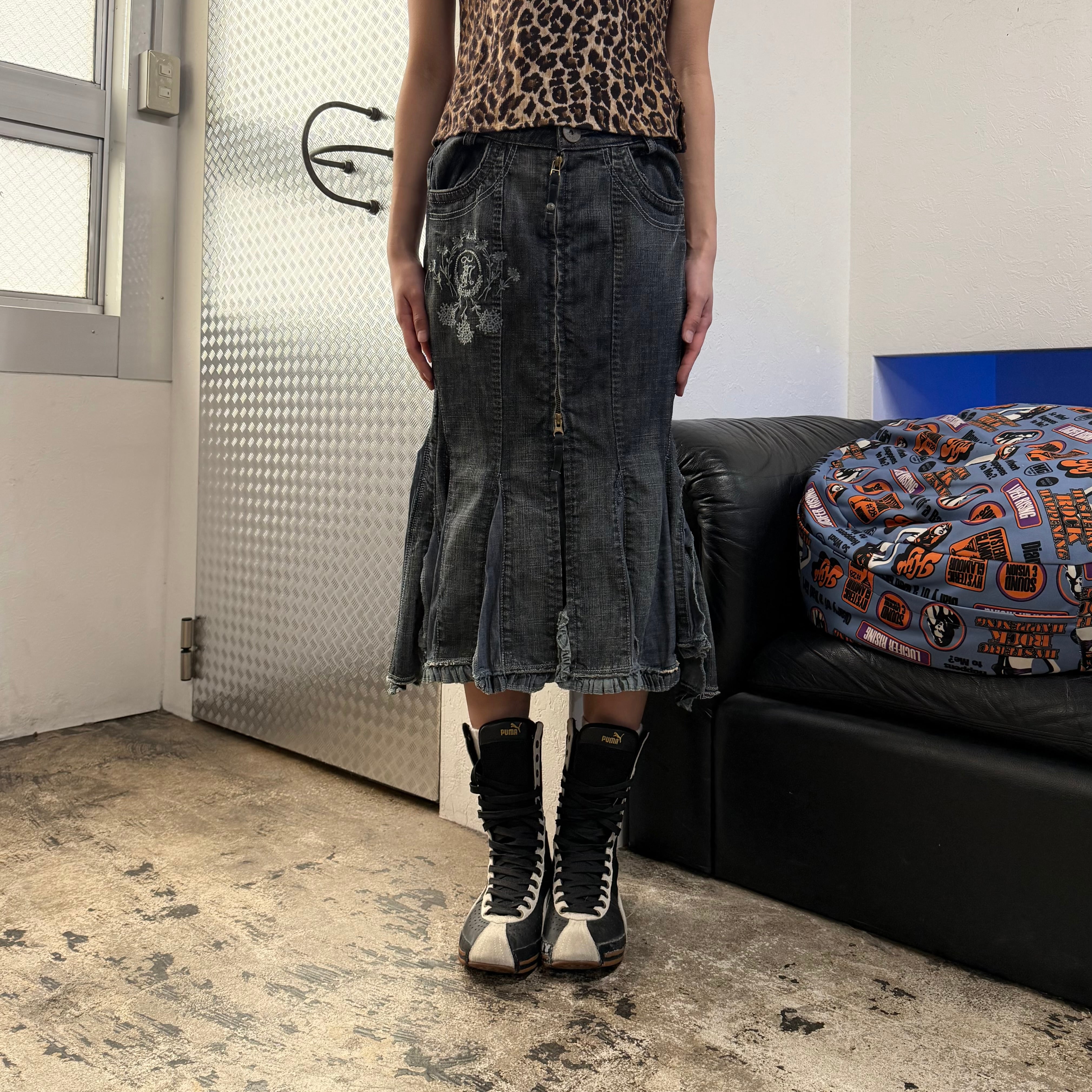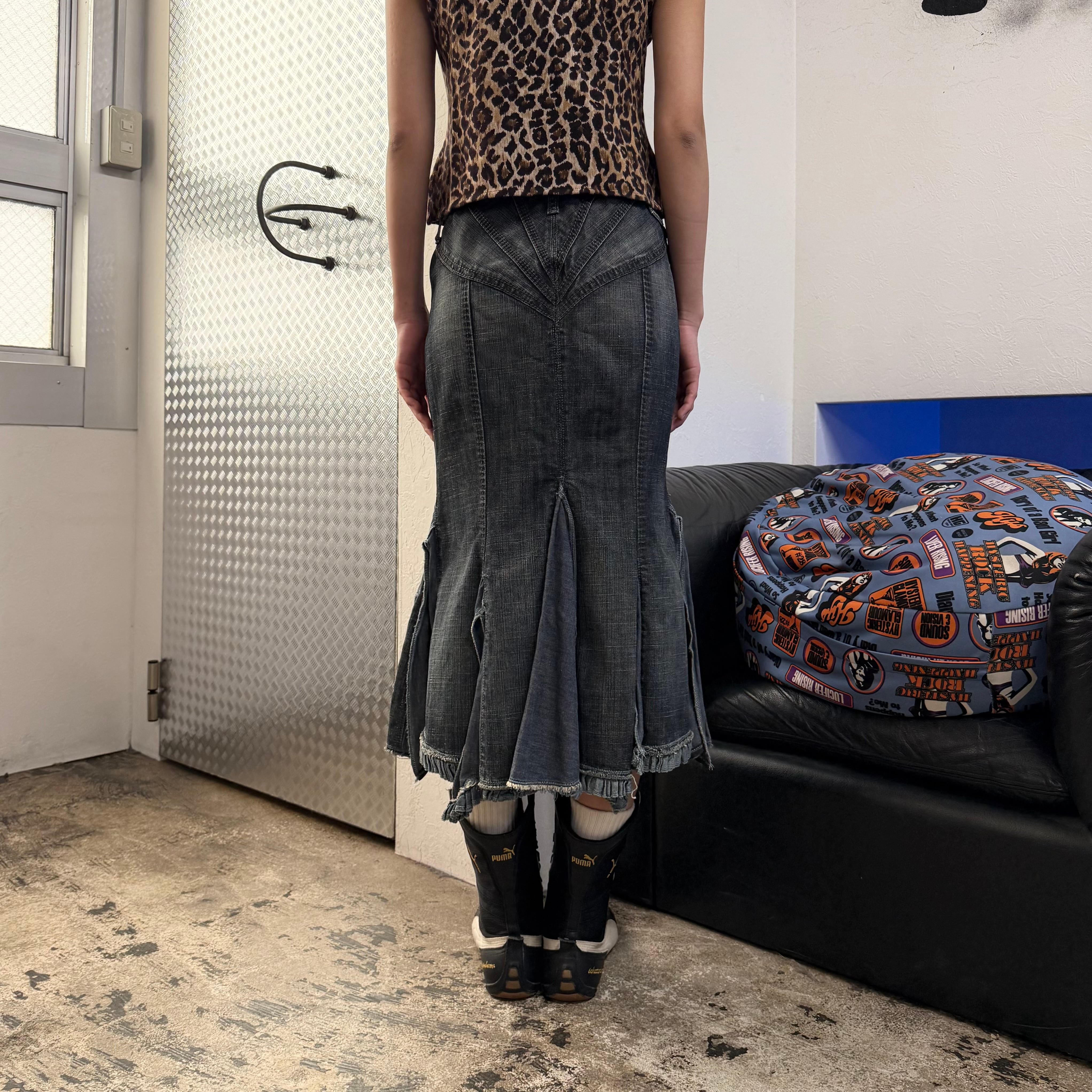 90s MARITHE + FRANCOIS GIRBAUD DENIM FRILL LONG SKIRT