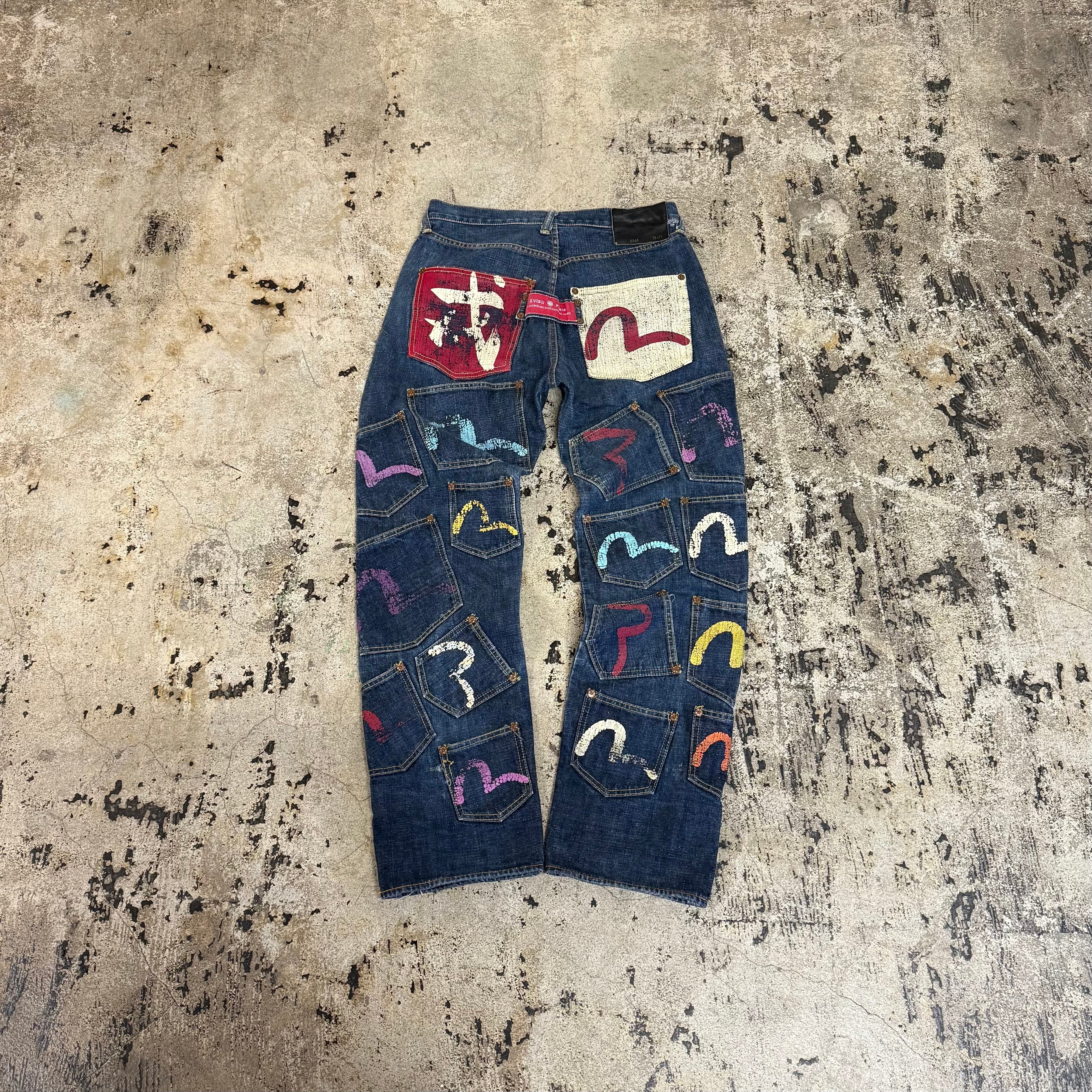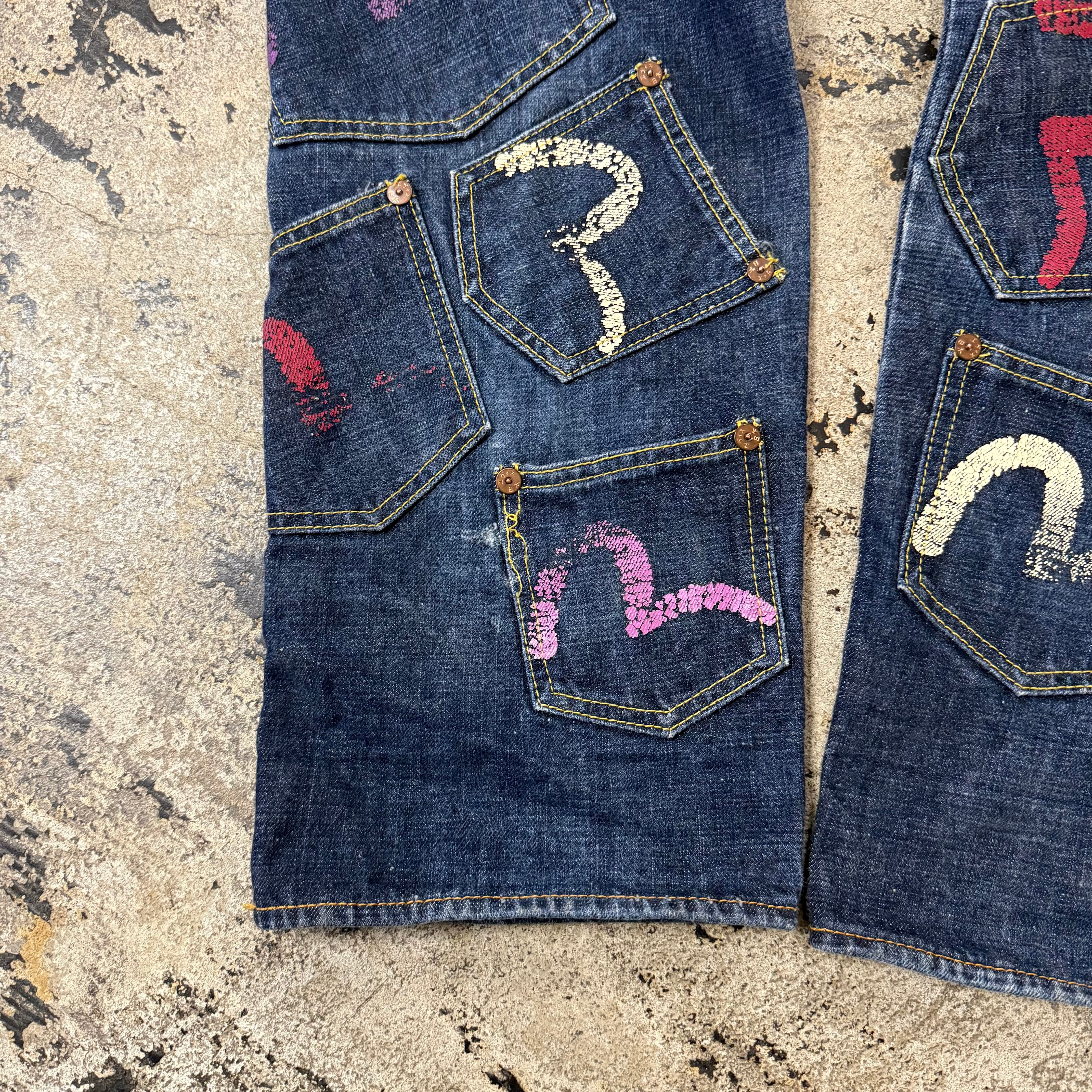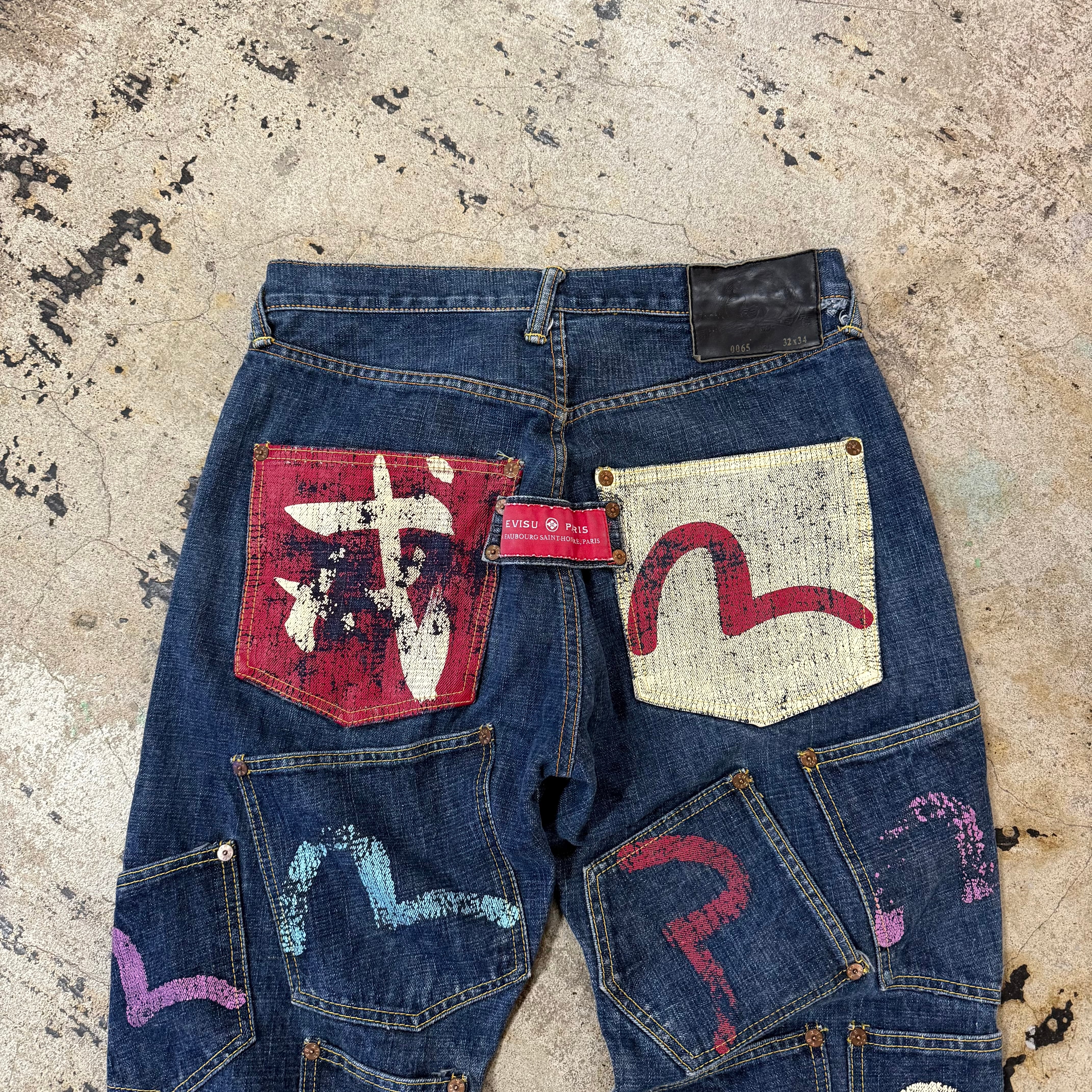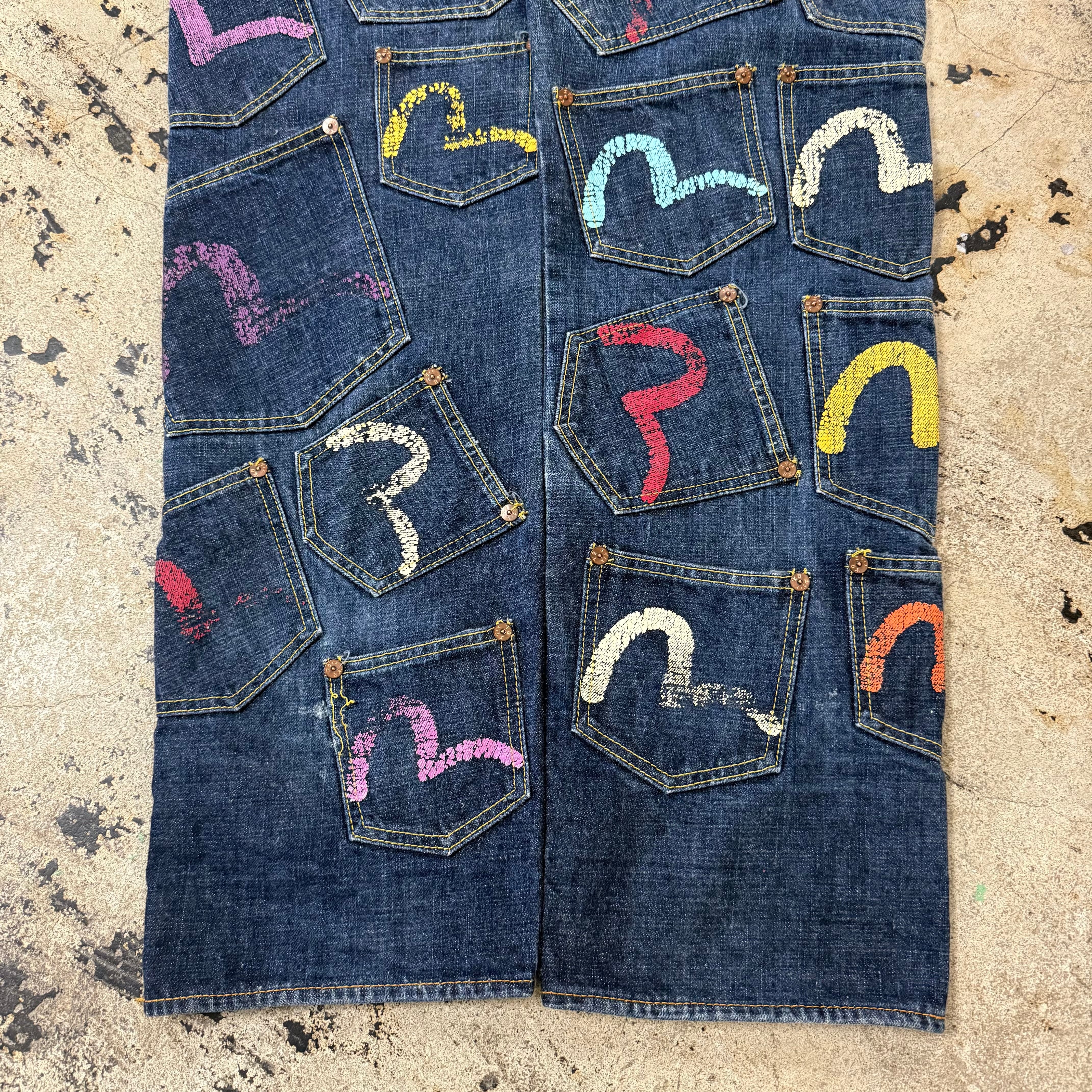 00s EVISU KAMONE PAINT MANY POCKET DENIM