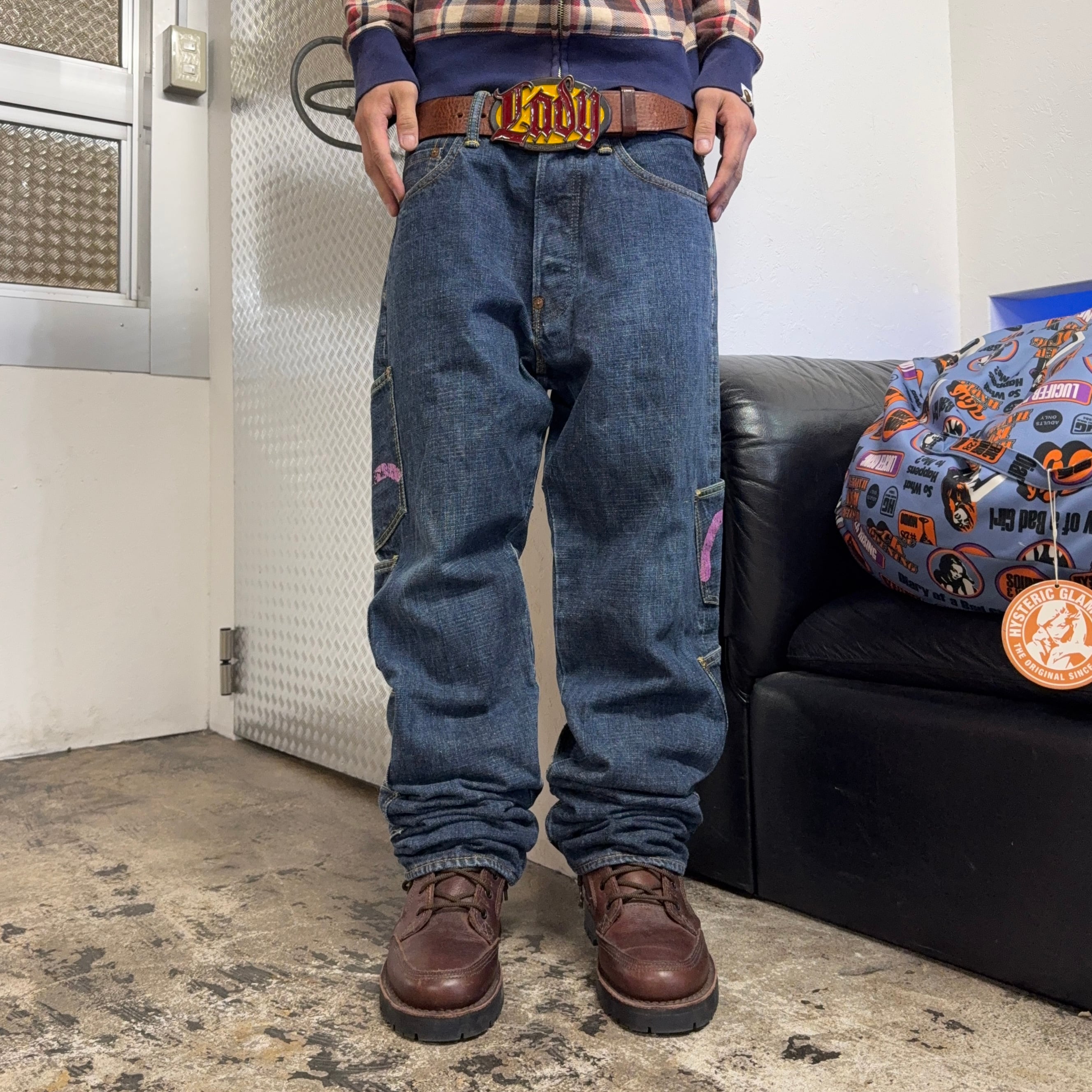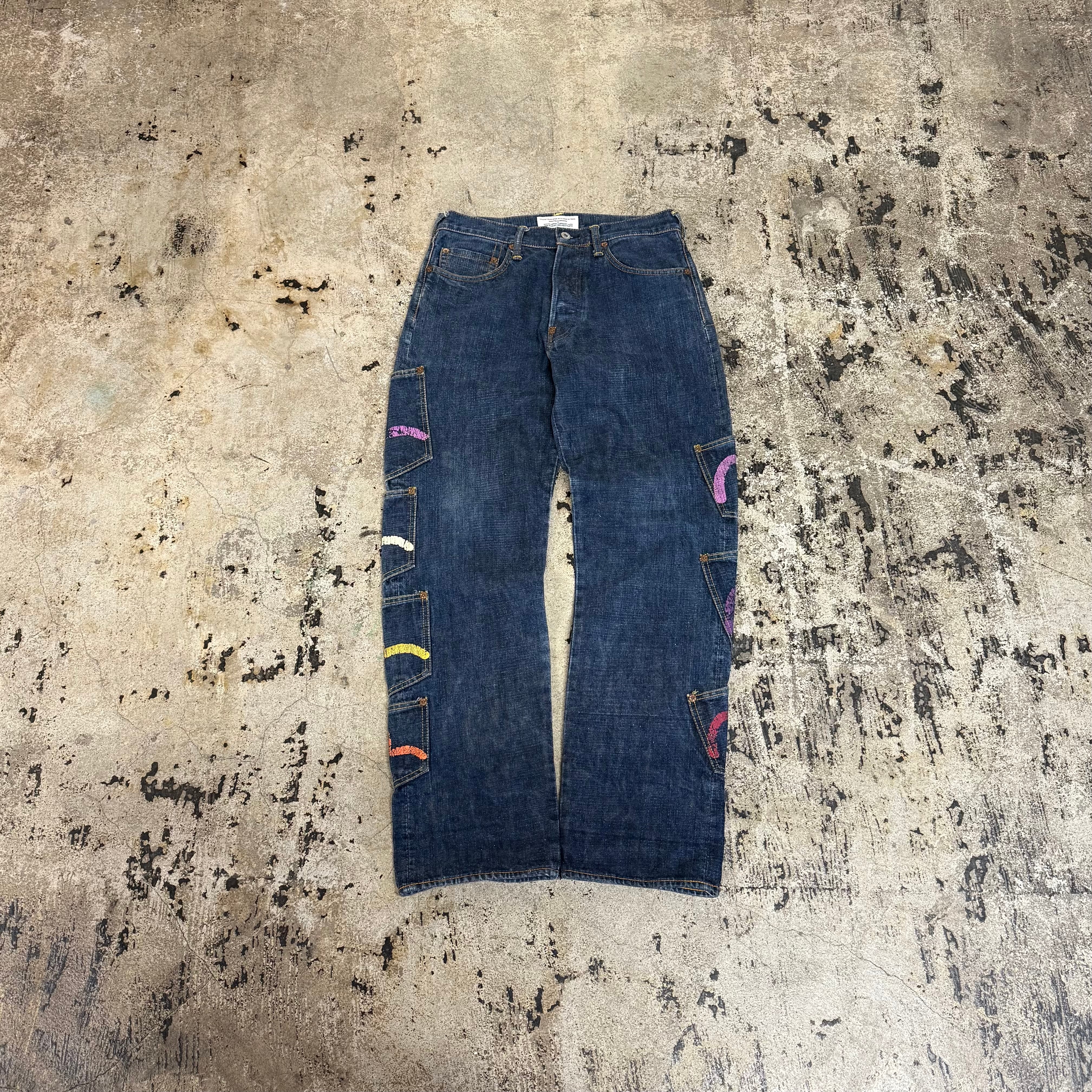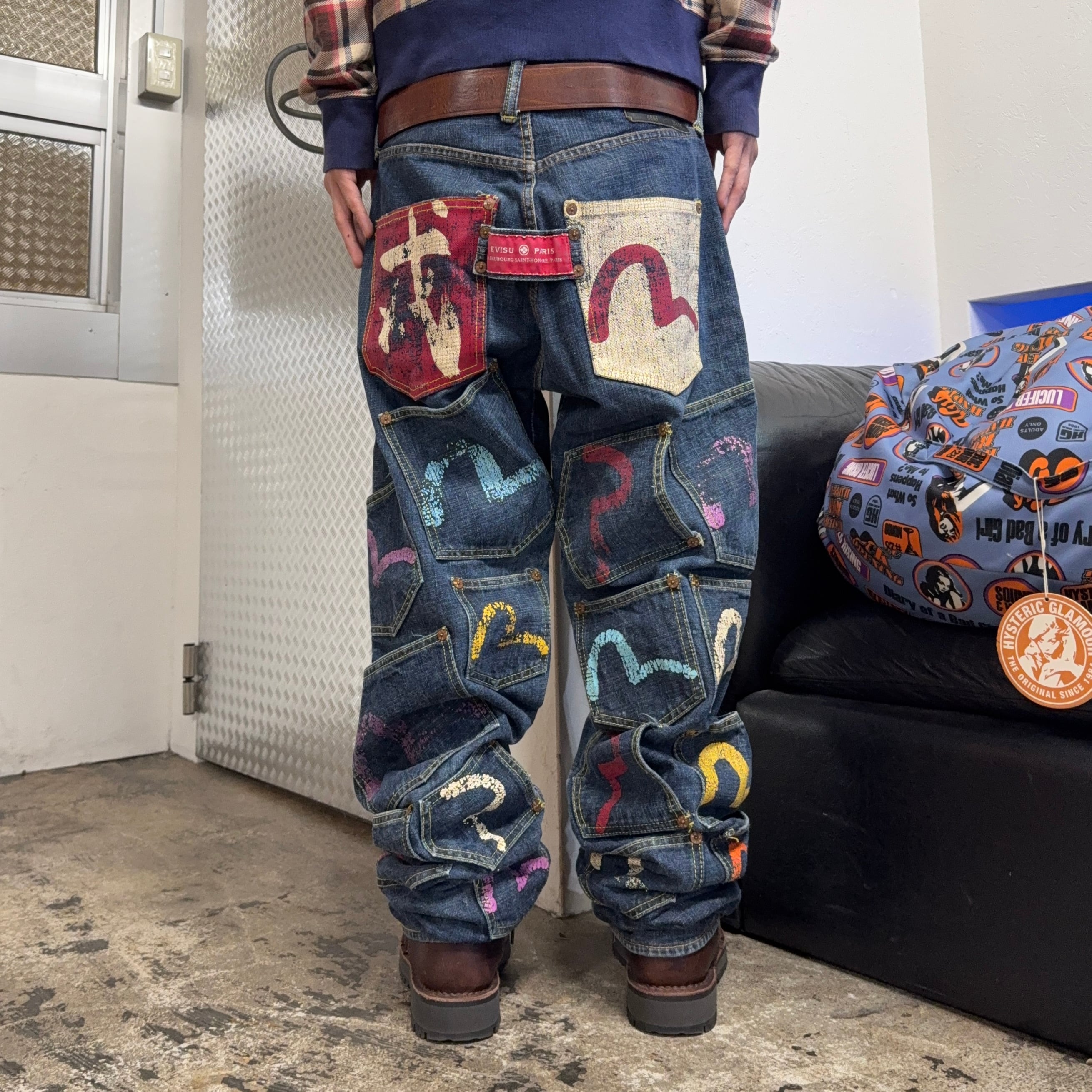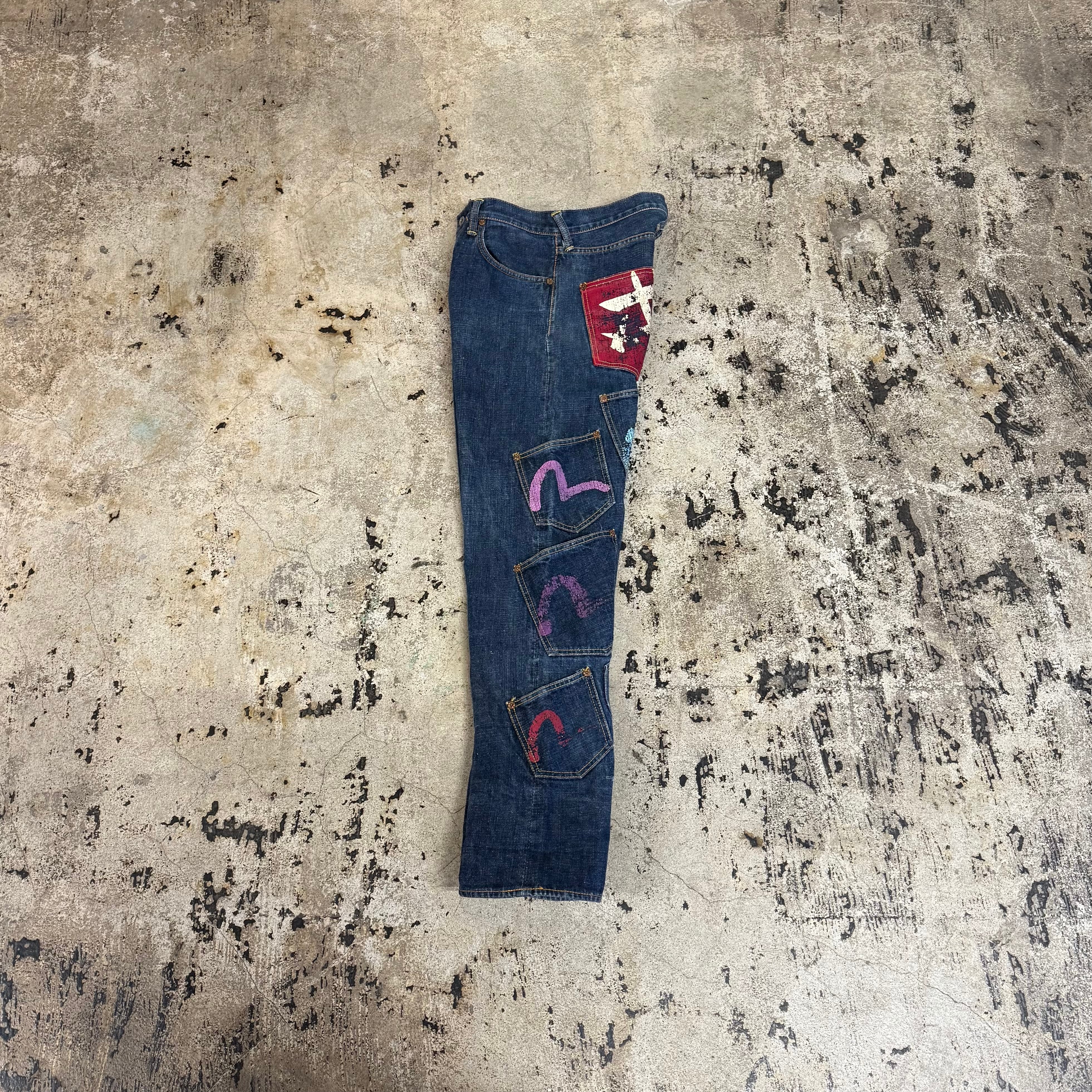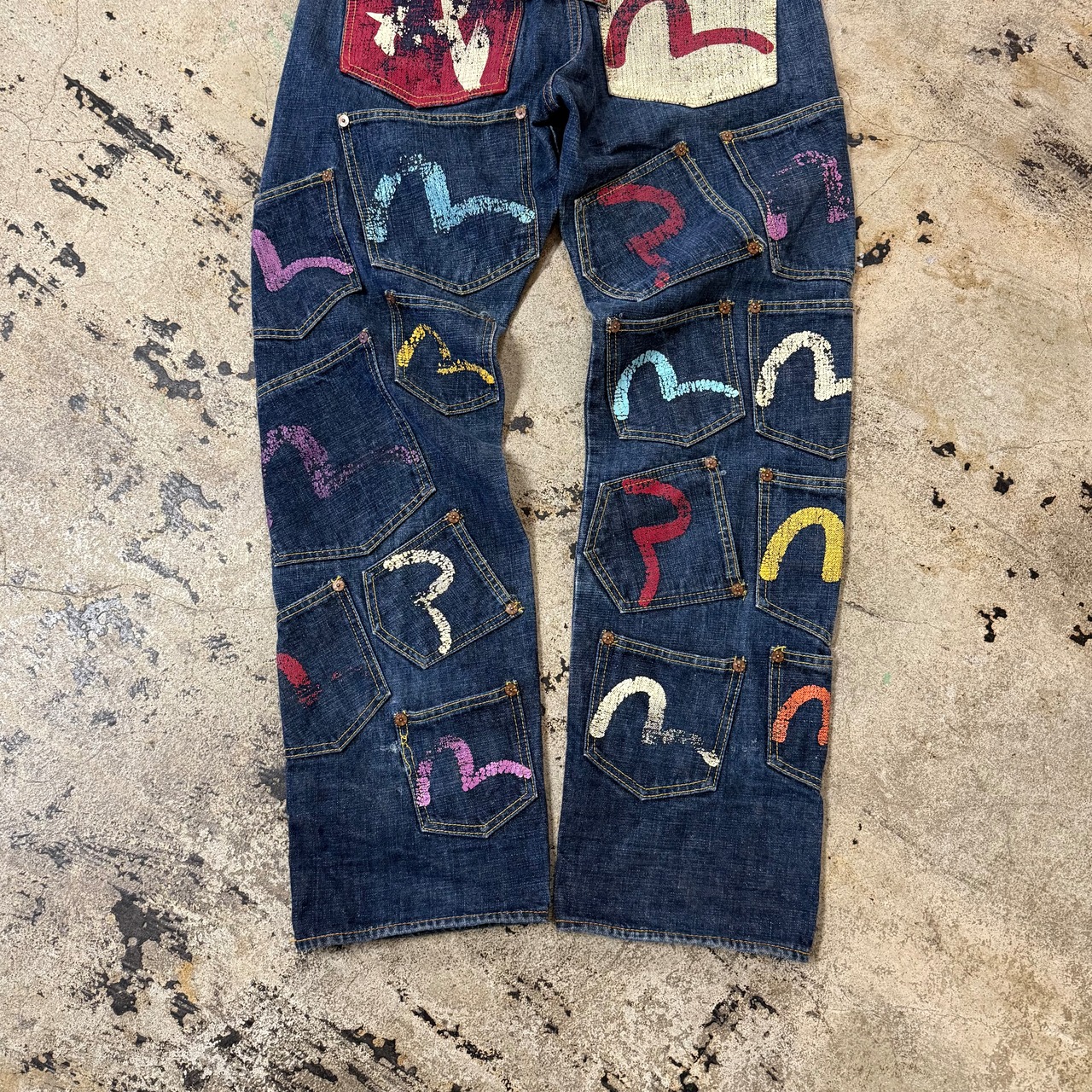 00s EVISU KAMONE PAINT MANY POCKET DENIM