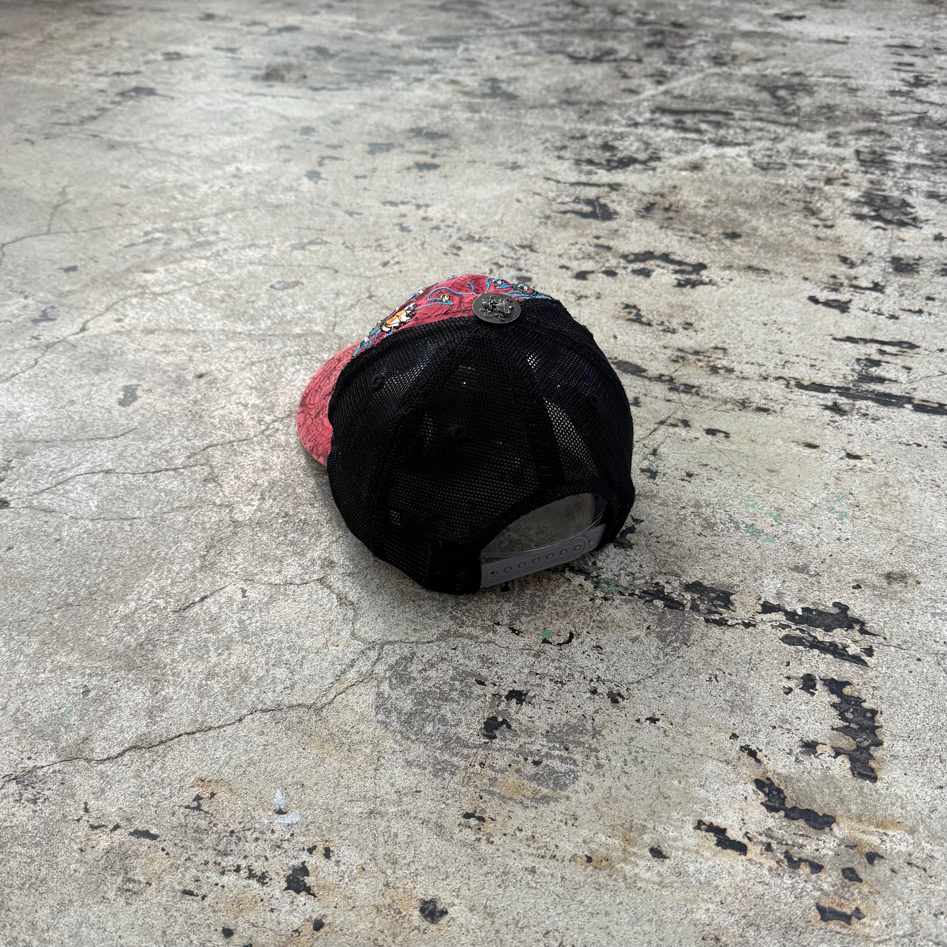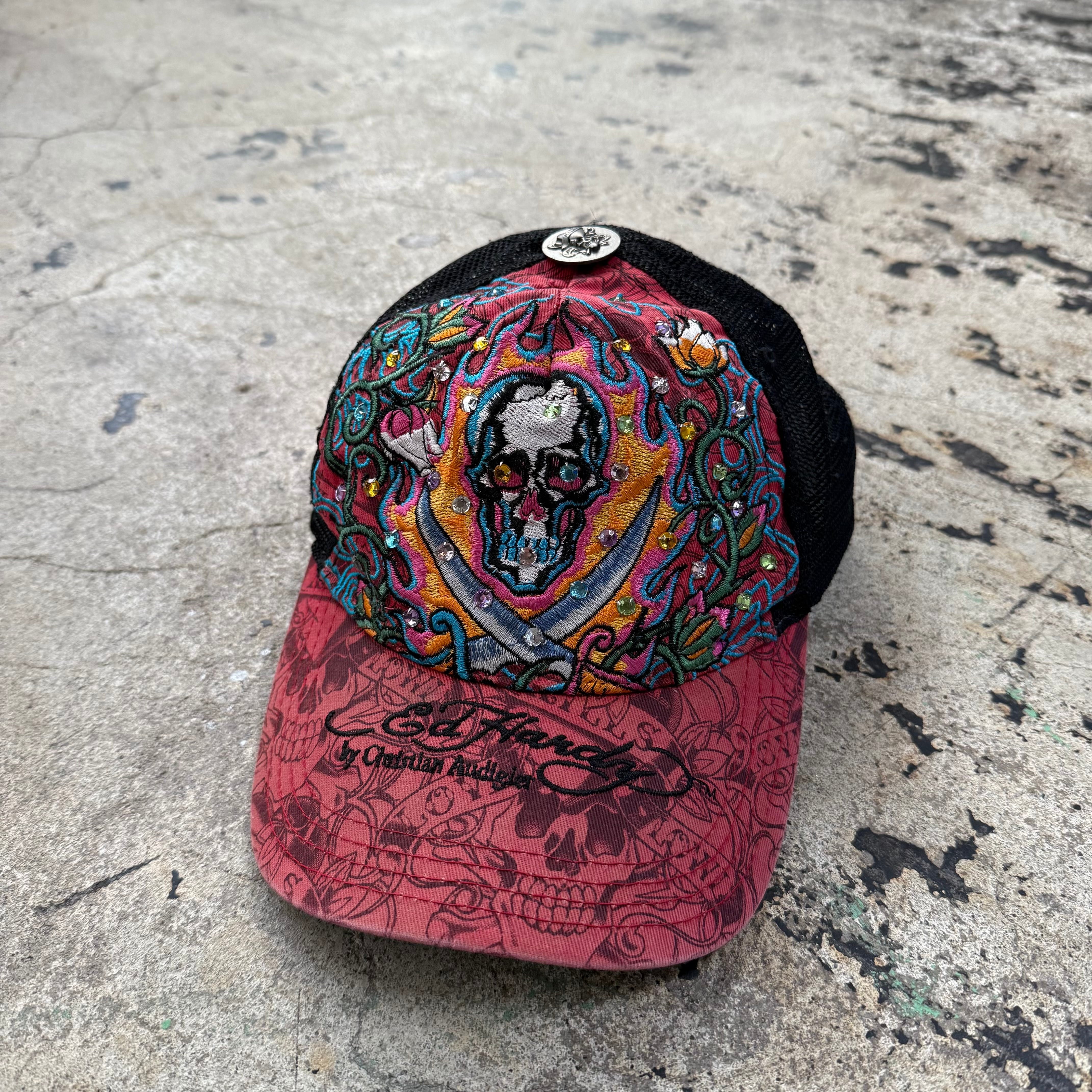 00s ED HARDY FLAME SKULL LINESTONE MESH CAP