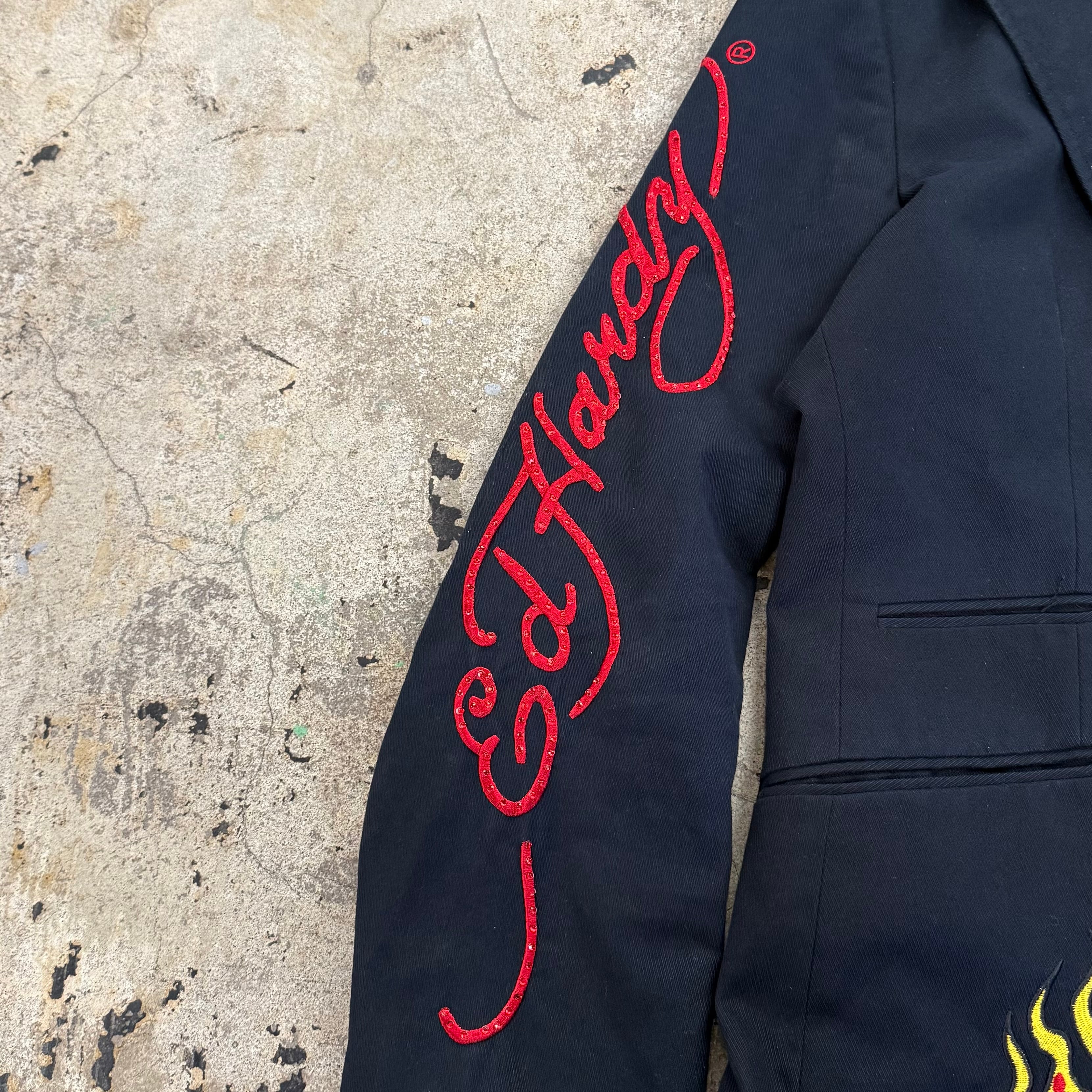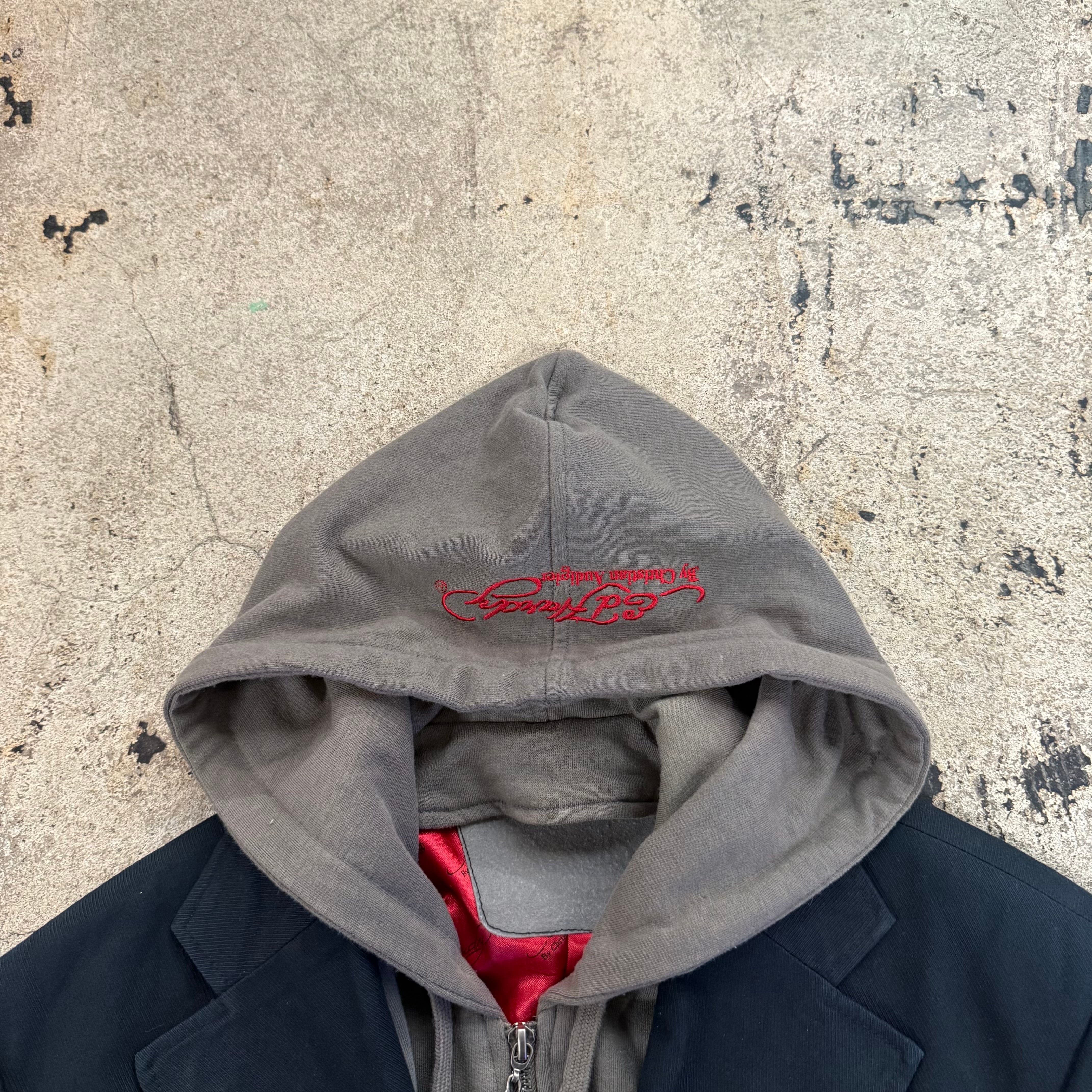 00s ED HARDY LAYERED EAGLE SKULL EMBROIDERY HOOD JACKET