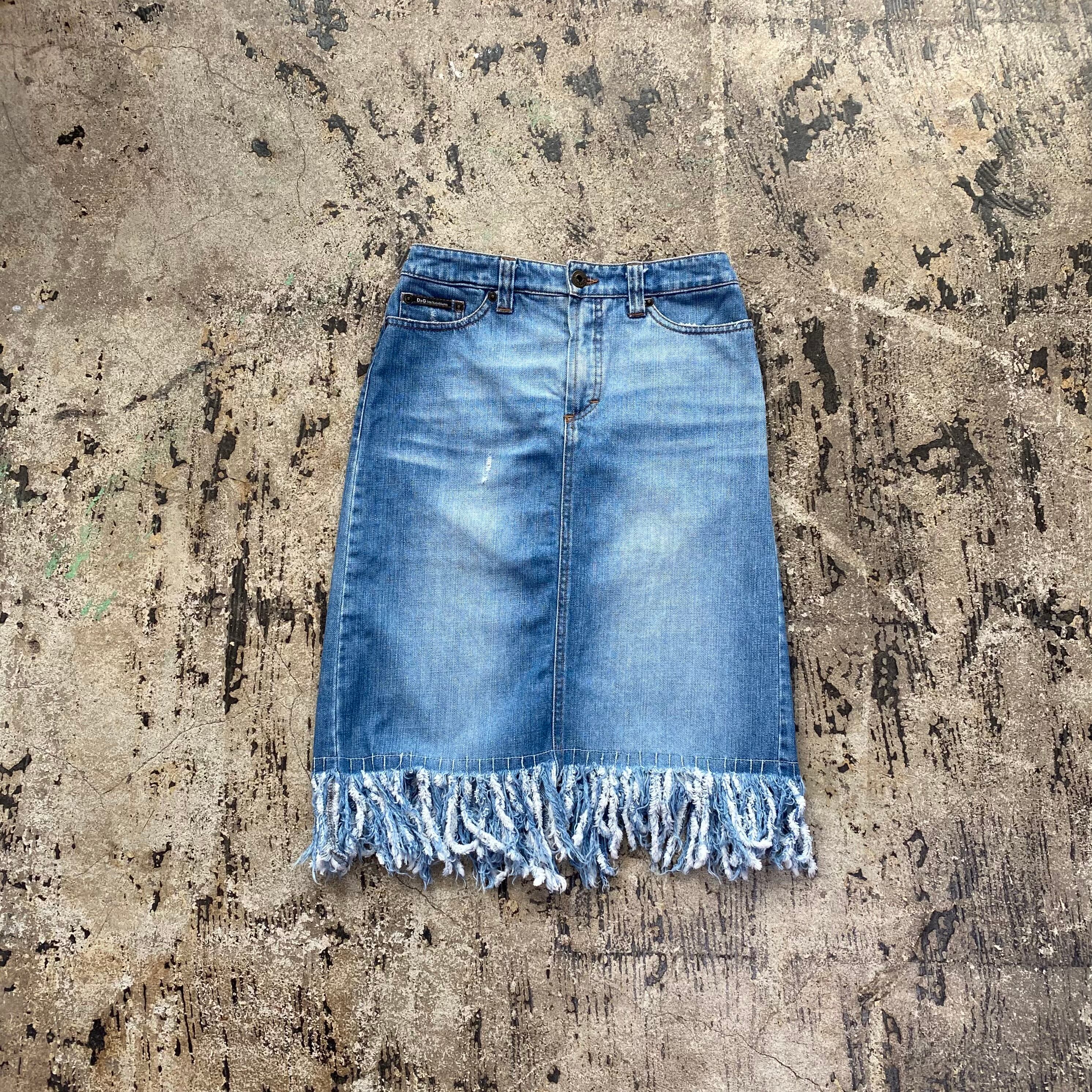 00s DOLCE&GABBANA HEM FRINGE DENIM SKIRT