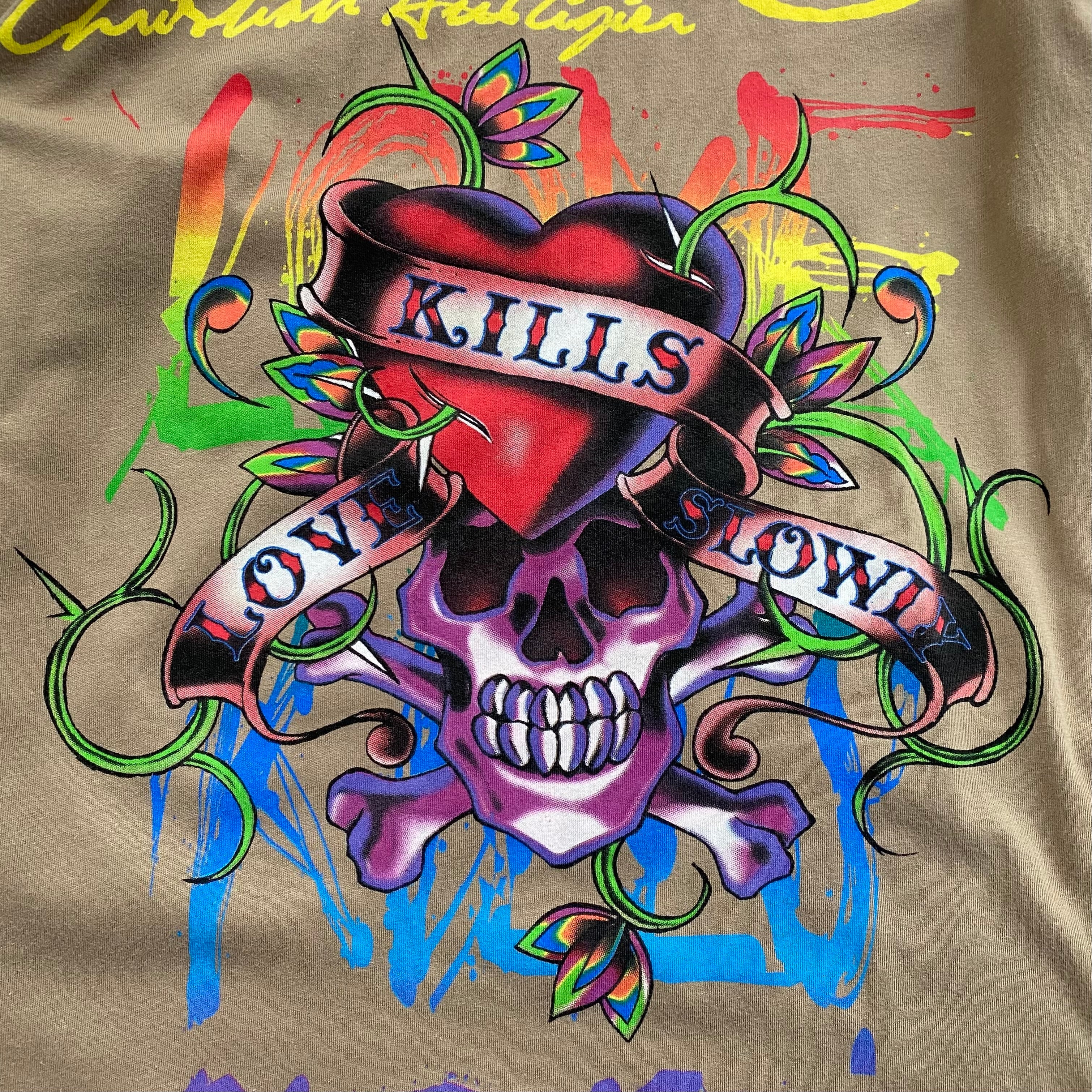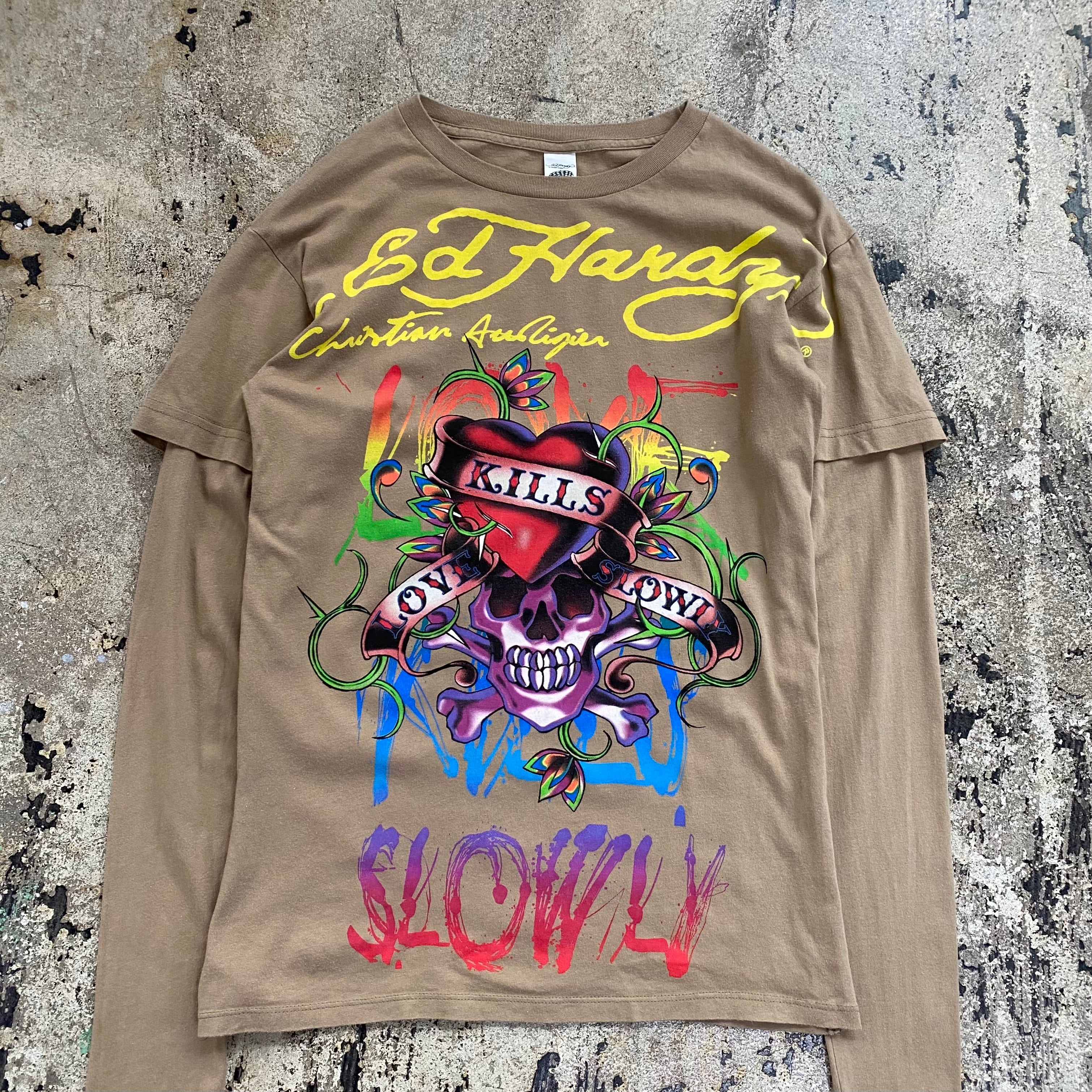 00s ED HARDY LAYERD SKULL PAINTING L/S