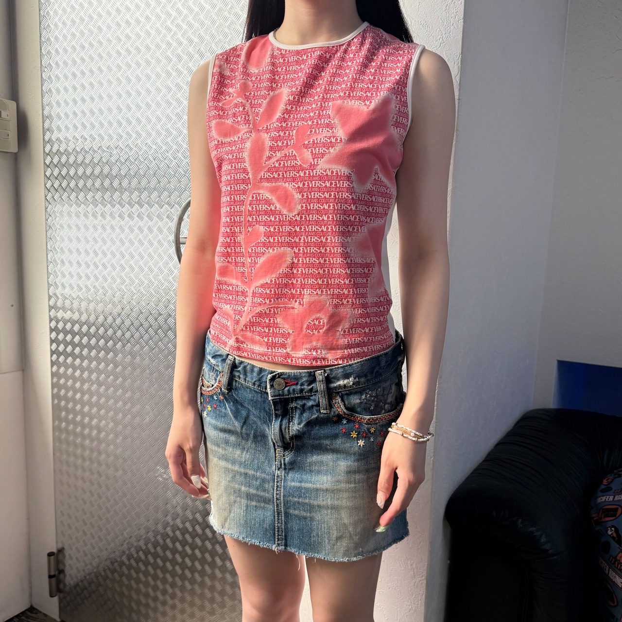 00s VERSACE MONOGRAM LEAF STAR TANK TOP