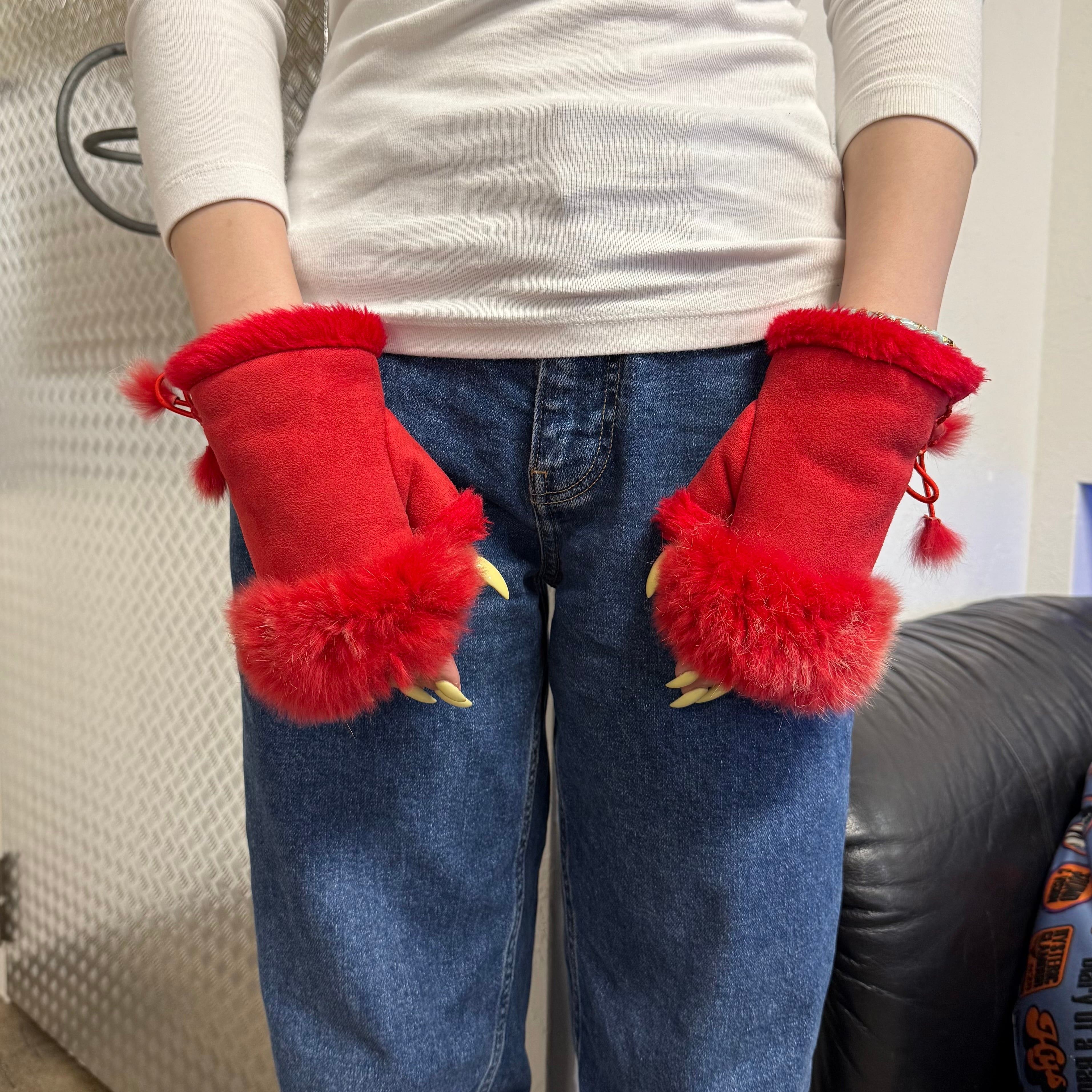 00s RABBIT FUR SUEDE LEATHER FINGERLESS GLOVE