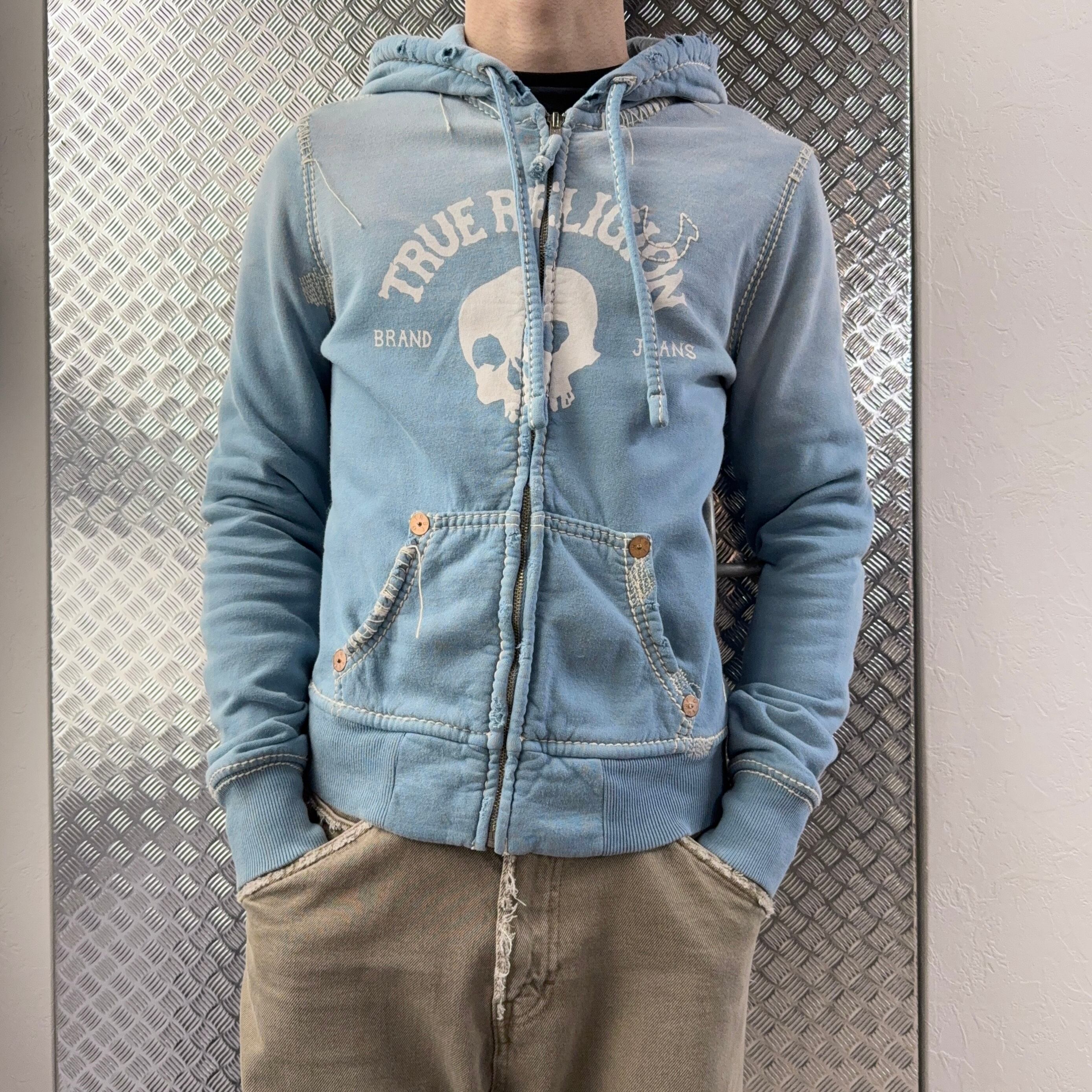 00s TRUE RELIGION SKULL STITCH BIG T HOODIE